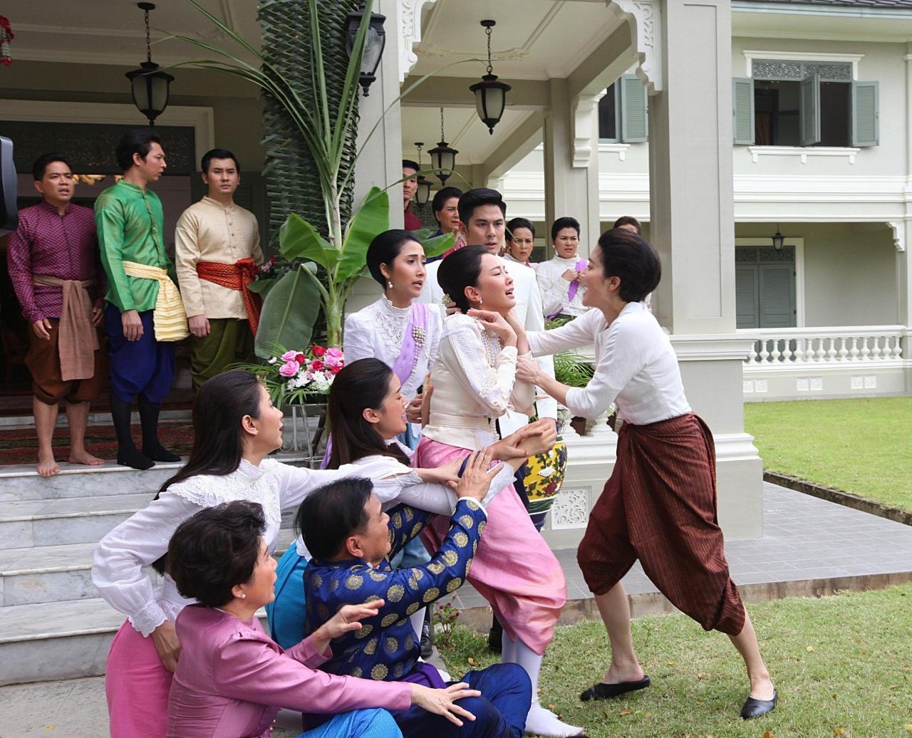 ฉากนี้เป็นตอนที่ขุนสัก (เคลลี่) ยกขบวนขันหมากไปสู่ขอคุณเทียนหยดฟ้า (นุ่น วรนุช) ระหว่างที่พิธีการกำลังดำเนินไปด้วยความหวานชื่น จู่ๆ ชบา (เจี๊ยบ โสภิตนภา) ก็ลากลูกสาวทั้งสองมาแหกอกขุนสักกับคุณเทียนหยดฟ้ากลางงานแต่ง
