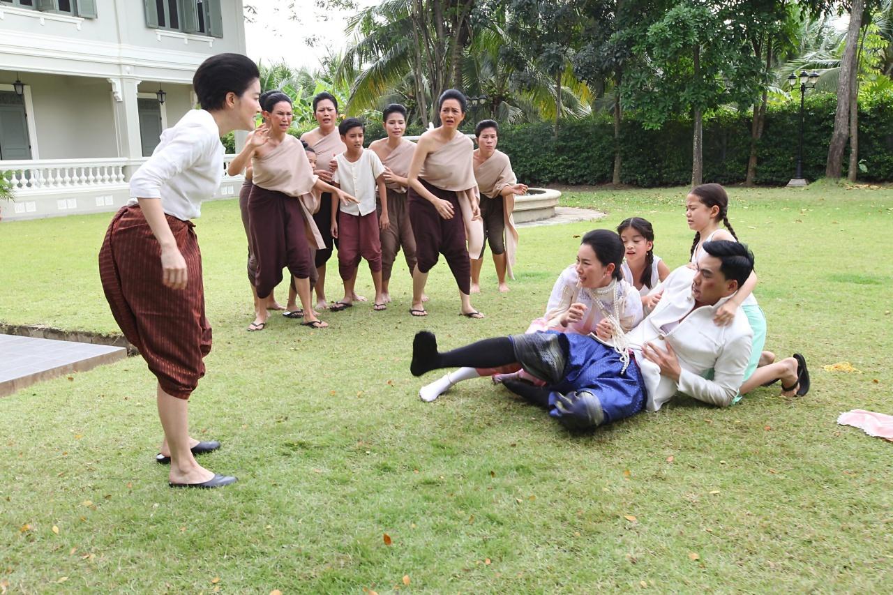 สำหรับเบื้องหลังฉากสุดแซ่บฉากนี้บอกเลยว่ายิ่งใหญ่อลังการงานสร้างจริงๆ ทั้งอุปกรณ์ประกอบฉาก เสื้อผ้า แล้วก็จำนวนนักแสดงที่เข้าฉาก เรียกว่าขนทัพกันมายกเซต สร้างความครึกครื้นได้ไม่น้อย ก่อนที่จะทำการแสดงเหมือนจับปูมาใส่กระด้งซะจริงๆ แต่ด้วยความเป็นนักแสดงมืออาชีพ ทุกคนทำการบ้านมาดี โดยเฉพาะ นุ่น เจี๊ยบ เคลลี่ ที่งานนี้ต้องออกแรงกันเยอะสุด