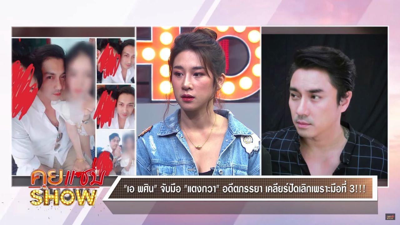 ล่าสุด เอ พศิน ได้โฟนอินผ่านทางรายการคุยแซ่บ Show ทางช่องONE 31 ที่มีพีเค ปิยะวัฒน์ และชมพู่ ก่อนบ่าย เป็นพิธีกร พร้อมทั้ง แตงกวา จิราพร ก็มาเปิดใจถึงสาเหตุของการเลิกกันในครั้งนี้