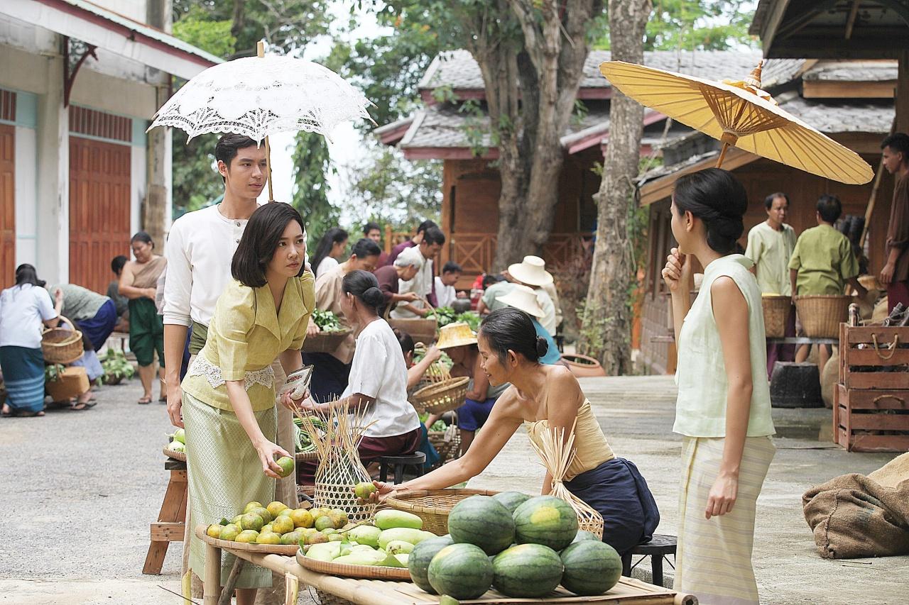 ฉากนี้เป็นตอนที่ คุณเทียน (นุ่น วรนุช) และผู้ติดตามไปเดินซื้อของที่ตลาด ซึ่งมี โมก (โดนัท ภัทรพลฒ์) คอยกางร่มดูแลคุณเทียนไม่ห่าง ขนมกล้วย (กุ๊กกิ๊ก กชกร) เห็น ชบา (เจี๊ยบ โสภิตนภา) และลูกสาวมาเดินตลาดเช่นกันเลยส่งสัญญาณให้คุณเทียน คุณเทียนส่งสัญญาณให้โมกรีบพาใบบัวกลับก่อน เพราะกลัวว่าชบาและลูกจะเจอโมก