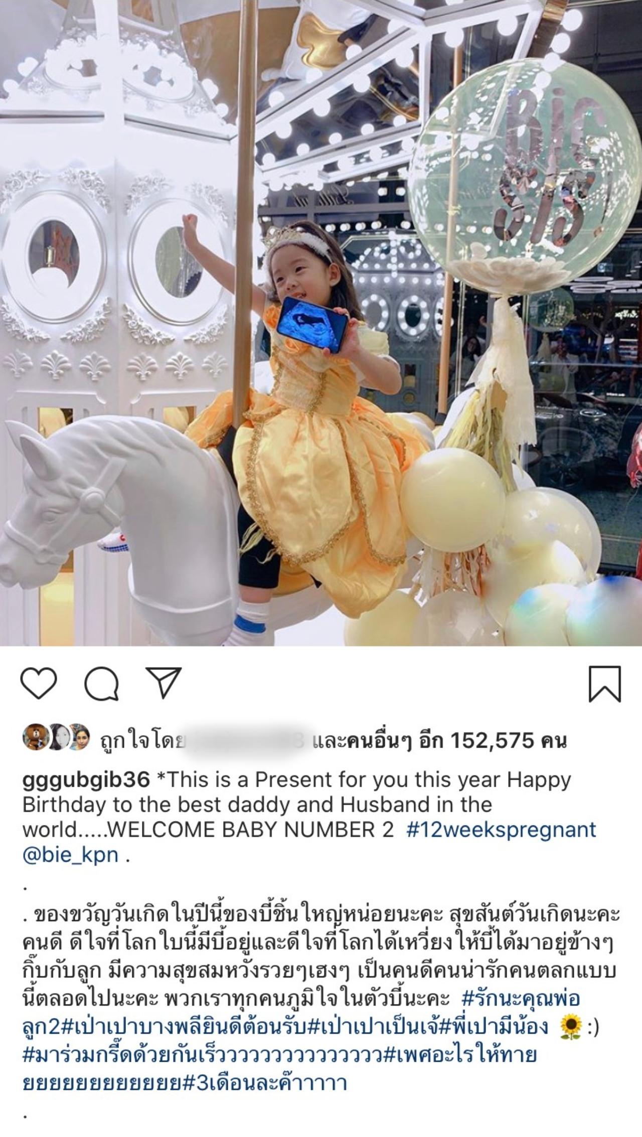 “This is a Present for you this year Happy Birthday to the best daddy and Husband in the world.....WELCOME BABY NUMBER 2 #12weekspregnant @bie_kpn ของขวัญวันเกิดในปีนี้ของบี้ชิ้นใหญ่หน่อยนะคะ สุขสันต์วันเกิดนะคะคนดี ดีใจที่โลกใบนี้มีบี้อยู่และดีใจที่โลกได้เหวี่ยงให้บี้ได้มาอยู่ข้างๆ กิ๊บกับลูก