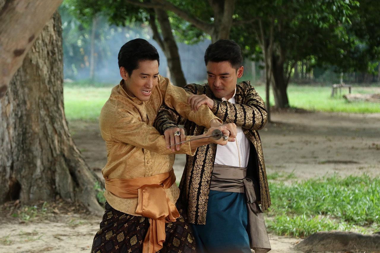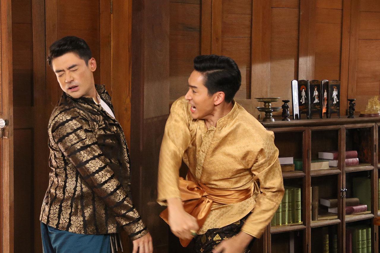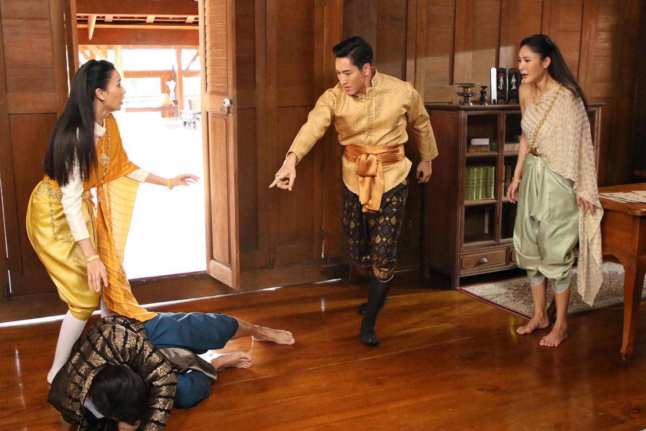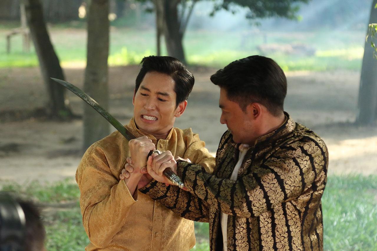 ฉากนี้ ถ่ายที่บ้านเรือนไทยสายน้ำจามจุรี ปทุมธานี วันนี้ฉากครบรส ทั้งบู๊ และตบจูบ ถึงเวลา ผู้กำกับ อดุลย์ บุญบุตร เรียกแตงโมและเติ้ลมาซ้อม คู่นี้เลิฟซีน ชิลเว่อร์ เพราะสนิทกัน ไม่ต้องซ้อมเยอะ ถ่ายจริง หลังจากเติ้ล แตงโม ดื่มชาเข้าไป ก็หวั่นไหว วูบวาบ เติ้ลอดใจไม่ไหว ปล้ำแตงโม แตงโมดิ้นขัดขืนสุดพลัง แต่สุดท้ายก็ต้านความรู้สึกไม่ไหว โดนจูบดื่มด่ำเข้าไป พอได้สติ ก็ผลักเติ้ลออก แล้วฟาดฝ่ามือใส่หน้าเรียกสติ สิ้นเสียงคัต แตงโมร้องเสียงหลง ไหว้ขอโทษเติ้ล เพราะรู้สึกว่าจังหวะฟ้อนเล็บใส่ มีเศษหนังติดเล็บ ส่วนเติ้ลก็ได้แผลบนหน้าเป็นที่ระลึก เลือดไหลซิบๆ เติ้ลบอกไกลหัวใจ ขอลุยฉากต่อไปโลด ถึงคิว ชายฉะกัน เอ๊ย...ชายฉกรรจ์ ไนกี้ต้องไล่ล่า เติ้ล ชายชู้ หลังจากเห็นภาพบาดตา เติ้ลจูบเมียรักอย่างเพลิดเพลิน ซ้อมเป๊ะ ก็ลุยเลย ไนกี้เห็นเติ้ล แตงโม กำลังจูบดูดดื่ม พุ่งเข้าไปต่อยเติ้ลคว่ำ แล้ววิ่งไปคว้าดาบมาไล่ฟัน เติ้ลวิ่งหนี แต่ก็ต้องชะงัก เมื่อโดนไล่ไปใส่ผ้าถุง เติ้ลเลยสู้กลับ แสดงให้รู้ว่า ไม่ได้ป๊อด ทั้งคู่ยื้อยุดกันอยู่พักใหญ่ ผลัดกันหวิดโดนดาบบั่นคอ เสียวแทนเลย...แม่เอ๊ย!! สิ้นเสียงคัต ทำเอานักแสดงจั๊กเปียก หอบจนต้องขอยาดมกันชุดใหญ่ ติดตามชมฉากนี้ วันพฤหัสบดีที่ 31 ตุลาคมนี้ เวลา 19.20 น. ใครๆ ก็ดู ช่อง 8 กดเลข 27