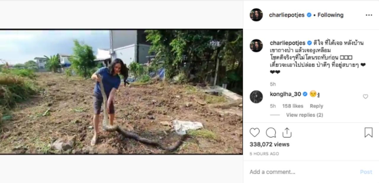 ทำเอาขนลุกขนพองไปตามๆ กัน เมื่อ แน็ก ชาลี ได้โพสต์คลิปตัวเองที่กำลังจับงูเหลือมหลังบ้าน หลังจากที่เพื่อนบ้านได้ถางป่าแล้วเจองูเหลือมตัวอ้วน กำลังนอนอยู่