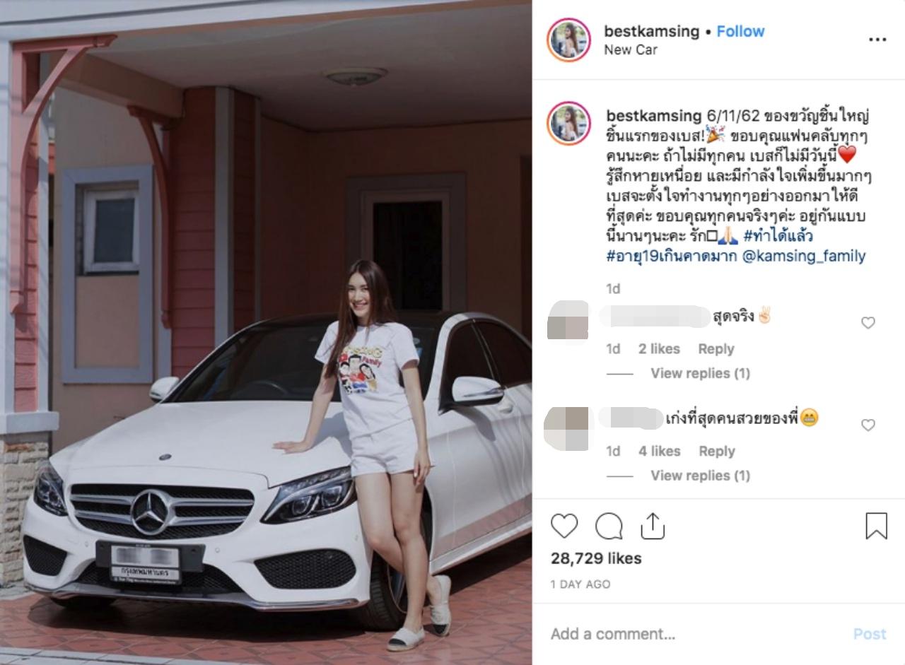 และล่าสุด เบส ก็ได้ถอยรถเบนซ์สุดหรูสีขาวป้ายแดง เพื่อเป็นของขวัญให้กับตัวเองในวัย 19 ปี ที่ทำงานหนักมากตลอด โดยเจ้าตัวได้โพสต์รูปตัวเองคู่รถเบนซ์คันงาม และเขียนแคปชั่นว่า