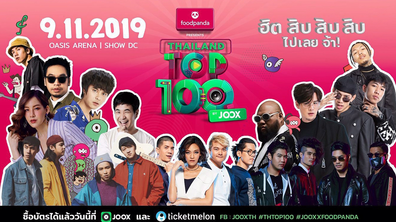 ออกมาสนุก แถมพุงกาง!! 10 ชั่วโมงเพลงฮิต 10 โชว์พิเศษ และร้อยเมนูเด็ด ในงาน “foodpanda Presents Thailand Top 100 by JOOX 2019” มหกรรมดนตรีสุดยิ่งใหญ่ ที่คอเพลงฮิตหลายคนรอคอย บอกเลยว่างานนี้ JOOX ขนทัพศิลปินเจ้าของผลงานเพลงฮิตติดชาร์ตกว่า 100 อันดับ