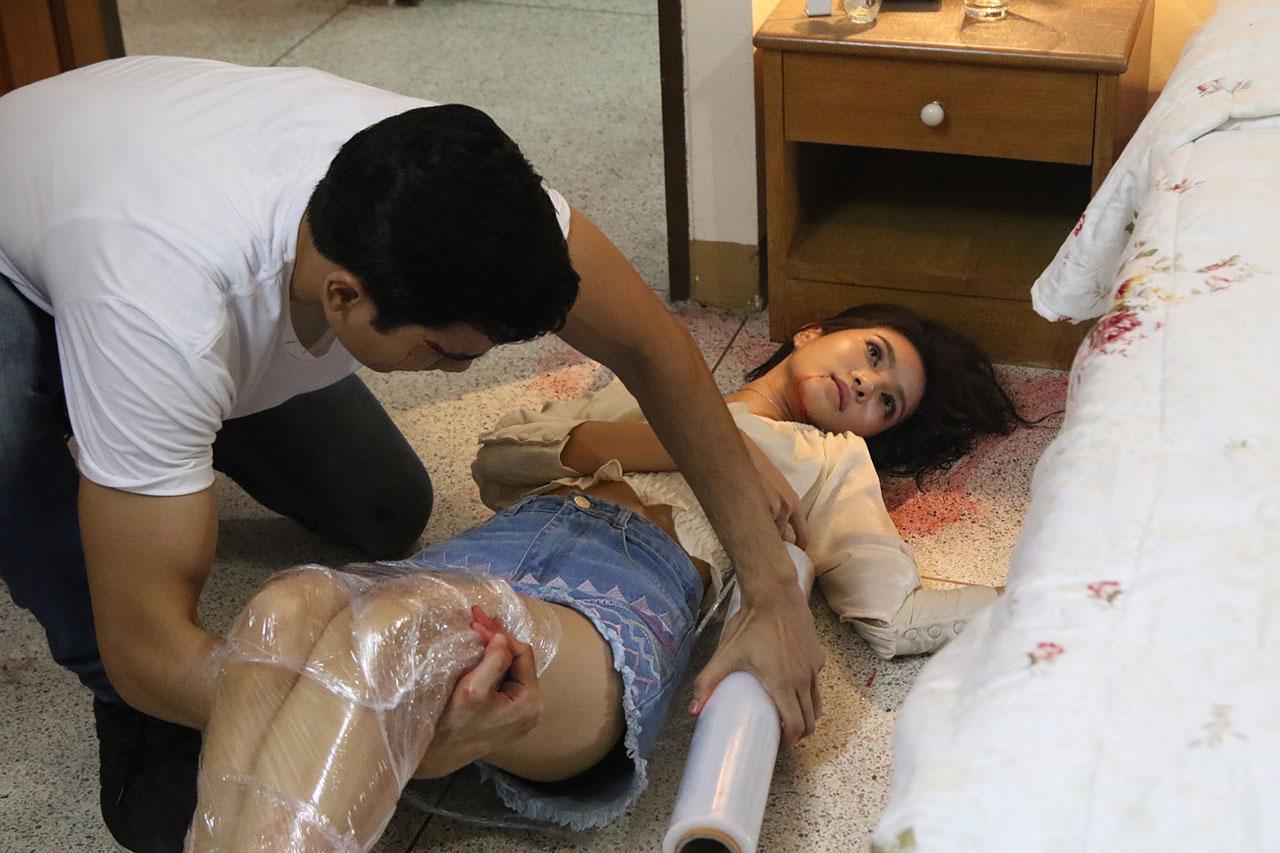 เริ่มถ่ายฉากที่ปังปอนด์ต้องซ่อนตัวหลังผ้าม่านข้างเตียง เพราะชานนท์ หรือแฟนของไอซ์มา ชอบหึง หวง หนักจนขั้นชอบทำร้ายร่างกาย แหม่ เห็นหล่อๆ ชอบซาดิสต์ก็ไม่บอก คิคิ ต่อชานนท์เข้ามาในห้อง พยายามหาว่าไอซ์ซ่อนผู้ชายคนไหนไว้ในห้อง แต่ก็หาไม่เจอ ด้วยความโมโหร้ายเลยจับไอซ์บีบคอ ไอซ์ดิ้นพล่าน ถูกชานนท์ตบล้มไปที่เตียง ปังปอนด์แอบดู จนหดหู่ไม่กล้าเข้าไปช่วย เลยแอบไปหลบที่ใต้เตียง แต่แล้วไอซ์หมดความอดทน หันไปหยิบแจกันบนหัวเตียงฟาดชานนท์อย่างจังเต็มแรง ทำเอาชานนท์หัวแตก ชานนท์โกรธจัด ตบเต็มแรงอีกรอบ ไอซ์ล้มไปทับโต๊ะบนหัวเตียงเต็มแรง และสลบไป ปังปอนด์เห็นตัวสั่นเทา ชานนท์ตกใจ เห็นเลือดไอซ์นองพื้น นึกว่าตาย เลยรีบหากระบอกแรปมาพันไอซ์ เพื่อซ่อนไว้ใต้เตียง ก่อนแรปสาวไอซ์พูดติดตลก 1 แมช ถ้าหนูกระดิกเท้ารัวๆ แสดงว่าหนูหายใจไม่ออกนะคะ พี่ๆ แต่ถ้าหนูเล่นเนียน เหมือนตายจริง หนูหยุดหายใจแล้วค่า ฮ่าๆ