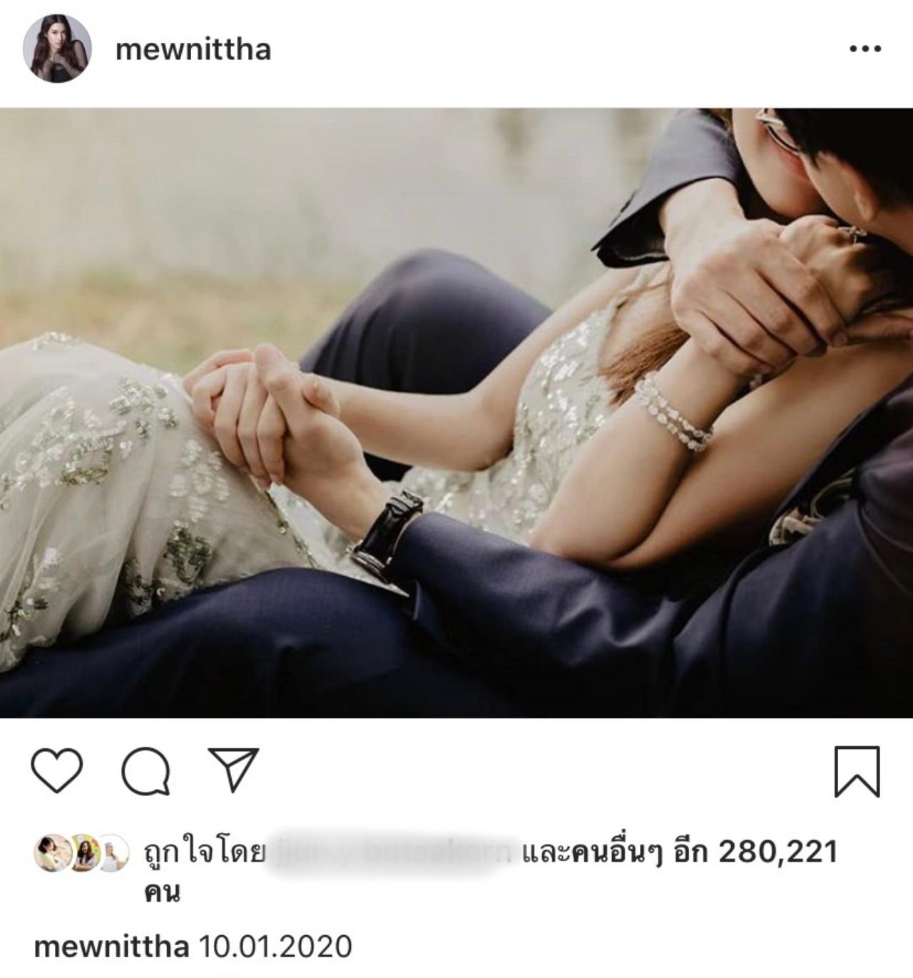 โดยสาวมิวได้โพสต์รูปพร้อมแคปชั่นว่า “10.01.2020” ซึ่งหลังจากที่สาวมิวโพสต์รูปและเผยฤกษ์แต่งงานของตัวเองผ่านโซเชียลไป ก็มีเพื่อนๆ พี่น้องในวงการบันเทิงและนอกวงการบันเทิง รวมไปถึงแฟนคลับของสาวมิว เข้ามาคอมเมนต์แสดงความยินดีกับสาวมิวและหนุ่มเซนต์อีกครั้งอย่างล้นหลาม