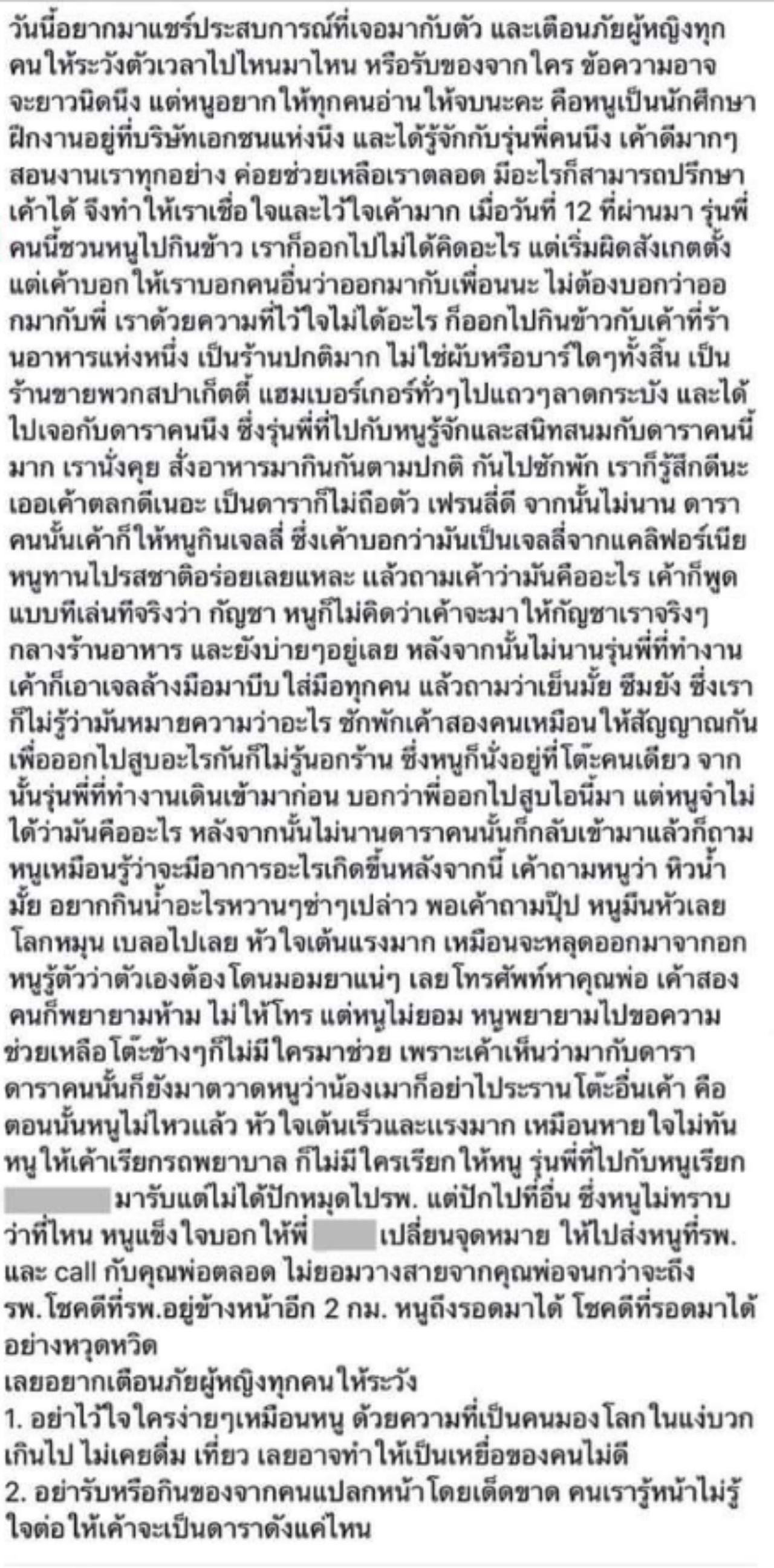 11.ล่าสุดน้องซีน ออกมายืนยันทุกอย่างในโพสต์เป็นความจริง ไม่ต้องการให้ใครเสียหาย ต้องการเตือนภัยผู้หญิงให้ระวังตัว โดยเฉพาะเพื่อนสนิทในเฟซบุ๊กเท่านั้น จากนี้ขอให้เป็นขั้นตอนของตำรวจ