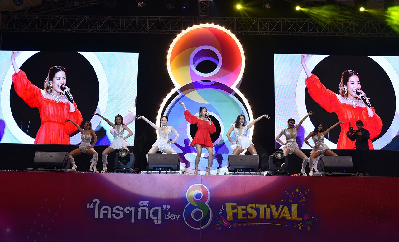 บุกถึงถิ่น ให้ได้ฟินกันถ้วนหน้า สำหรับ งาน “ใครๆ ก็ดู ช่อง 8 เฟสติวัล” ที่ทาง สถานีโทรทัศน์ ช่อง 8 ส่งตรงความสุขถึงที่ ประเดิมที่ ภาคกลาง ห้างบิ๊กซี บ้านโป่ง จ.ราชบุรี และ ภาคอีสาน ห้างบิ๊กซี จ.ขอนแก่น วันนี้ เราจึงประมวลภาพความสนุกมาให้ได้ชมกัน นำโดย ทัพดารา จากละคร “เล่ห์รัญจวน” ไนกี้ นิธิดล, ฝ้าย เวฬุรีย์, มาร์ค อภิวิชญ์ และ จูน ชลฤดี ที่กระแสความแรง ความร้าย โดนใจแฟนละคร พากันเรียกชื่อ ขุนราม, ศรีจันทร์, ระพี, แก้วเจ้าจอม ไม่ขาดปาก ด้านผู้ประกาศข่าว ก็มาพบปะแฟนข่าวแบบใกล้ชิด ทั้ง ต่วย ภคพงศ์ และ แนส ทิฆัมพร รายการ ปากท้องต้องรู้, อู๋ สถาพร และ หลี่แช วิยะดา จาก คุยข่าวเช้า ช่อง 8 ฟากศิลปิน จัดใหญ่ ไฟกะพริบ 3 สาว ตัวแม่ค่ายอาร์สยาม ใบเตย อาร์สยาม, จ๊ะ อาร์สยาม และ กระแต อาร์สยาม ขนทัพแดนเซอร์ชุดใหญ่ จัดเต็มความมันส์ทุกเพลง แดนซ์กันจนเวทีสะเทือน ไฟลุกกันเลยทีเดียว ร่วมด้วย พี่น้องศิลปินอีกเพียบ หญิง ฐิติกานต์ อาร์สยาม, ต้นข้าว อาร์สยาม, เพลง อาร์สยาม, กานดา อาร์สยาม, บิว พงศ์พิพัฒน์ อาร์สยาม, วิด ไฮเปอร์ ฯลฯ ที่หยิบเอาเพลงแดนซ์ เพลงดัง มาร้องให้ฟินกันยกงาน และยังมีแขกเซอร์ไพรส์ อย่าง หนามเตย สะแบงบิน, เพชร สหรัตน์ มาเติมความสนุกแบบดับเบิ้ล แต่ที่เฮแรงกว่าใครๆ ก็ ผู้โชคดีที่มาร่วมงาน ได้รับรางวัลเป็น “สร้อยคอทองคำ” ติดไม้ติดมือกลับบ้านอีกด้วย เรียกว่าเป็นงานที่ประสบความสำเร็จอย่างล้นหลาม