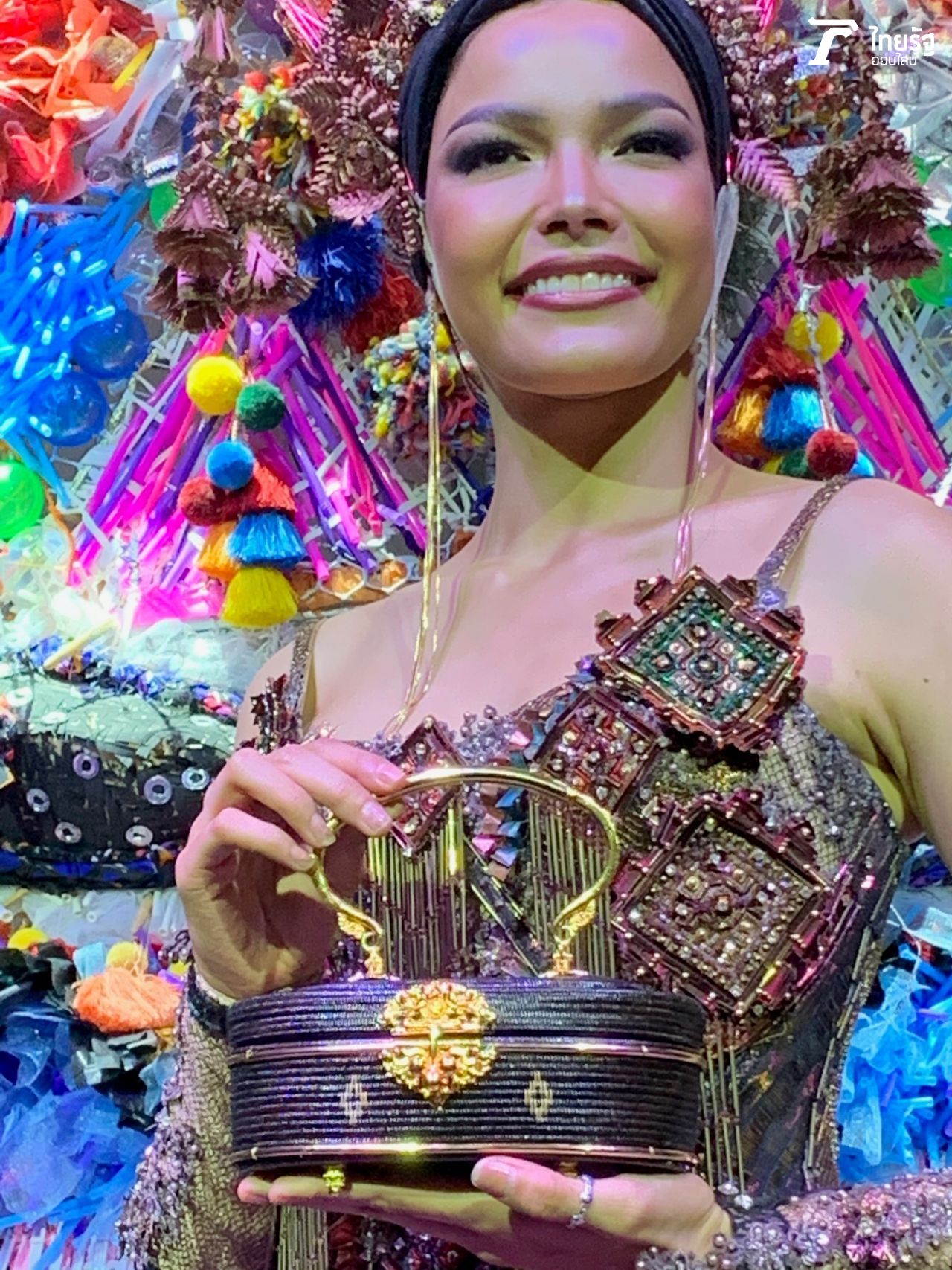 เพิ่งแถลงข่าวเปิดตัวชุดประจำชาติ จะใช้ในรอบแข่งขันรอบชุดประจำชาติ บนเวทีมิสยูนิเวิร์ส Miss Universe 2019 ที่ห้องออดิทอเรียม ชั้น 1 หอศิลป์ร่วมสมัยราชดําเนิน ที่ได้แรงบันดาลใจมาจาก ประเพณีแห่ผีตาโขน อ.ด่านซ้าย จ.เลย