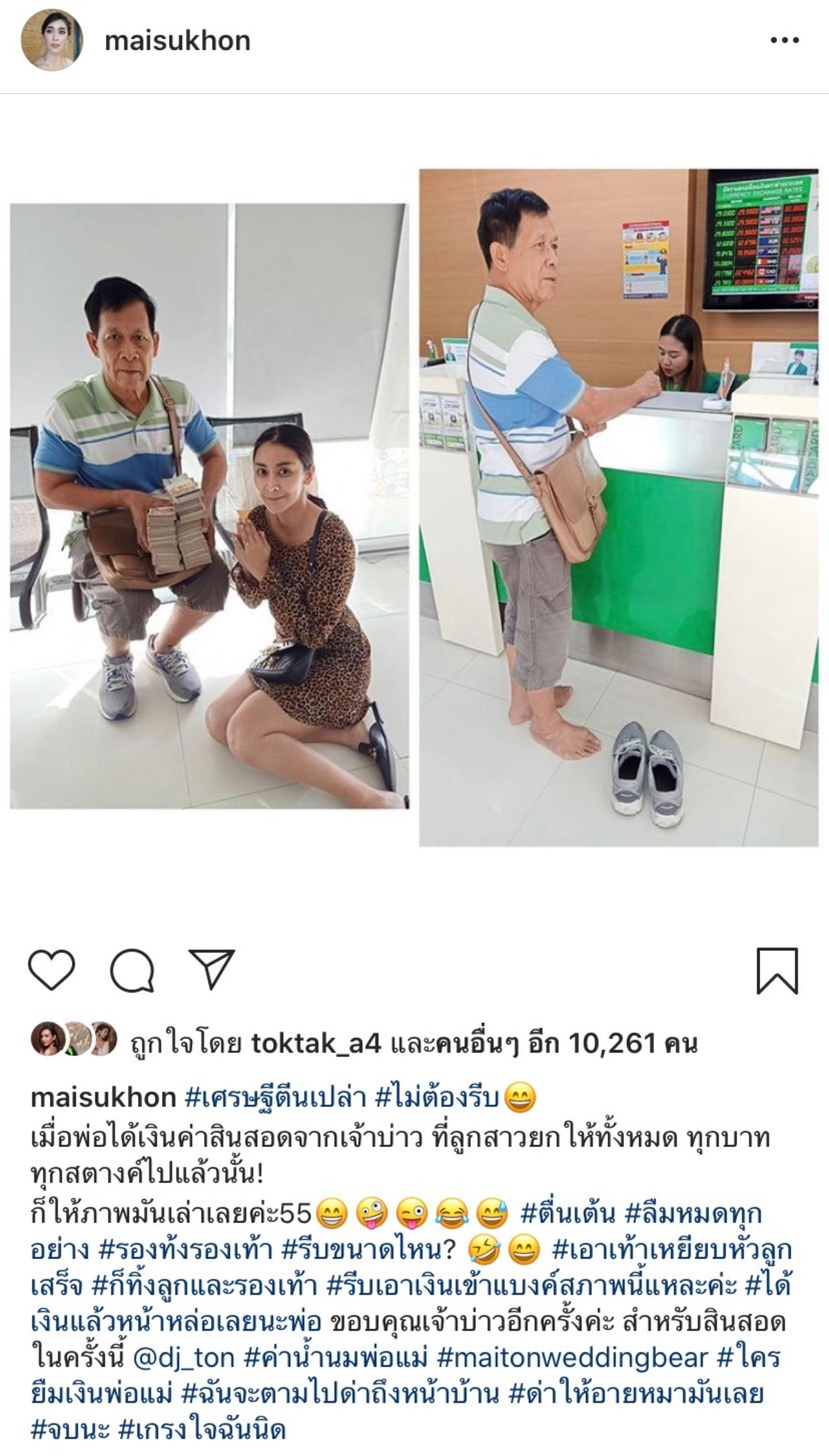 หลังจากที่ก่อนหน้านี้ ใหม่ สุคนธวา ได้โพสต์รูปพร้อมให้เงินสินสอดพ่อกับแม่ 10 ล้านบาทไปแล้วนั้น ล่าสุด สาวใหม่ก็ได้โพสต์รูปที่ทำเอาหลายคนเห็นแล้วต้องยิ้มไปตามๆ กัน เมื่อคุณพ่อนำเงินที่ได้จากลูกสาวไปฝากธนาคาร โดยสาวใหม่ เล่าโมเมนต์น่ารักๆ ของคุณพ่อให้ฟังว่า
