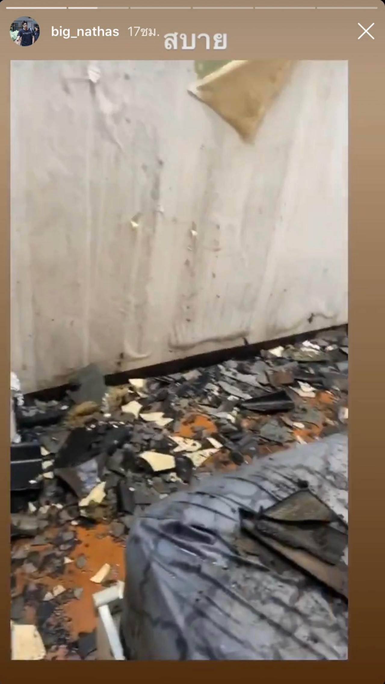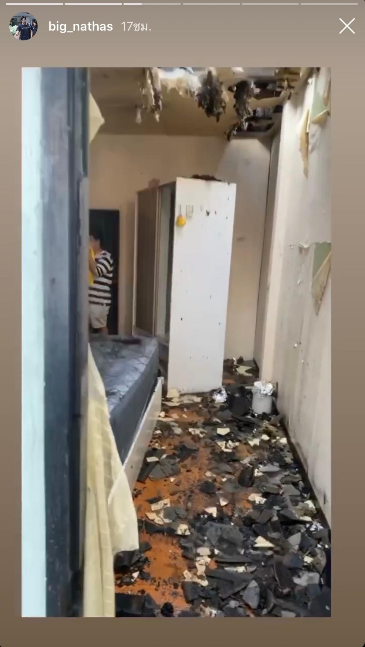 และหนุ่มบิ๊กก็ได้โพสต์คลิปลงไอจีสตอรี่ เผยให้เห็นสภาพห้องของตนเองที่ถูกไฟไหม้ ซึ่งมีสภาพเละเทะและยับเยินมาก ซึ่งหนุ่มบิ๊กบอกว่า ไม่เหลืออะไรเลย ก่อนจะถอนหายใจแรงๆ ซึ่งหลังจากที่หนุ่มบิ๊กโพสต์รูป ข้อความและคลิปดังกล่าวไป ก็มีแฟนๆ เข้ามาให้กำลังใจหนุ่มบิ๊กกันอย่างมากมาย