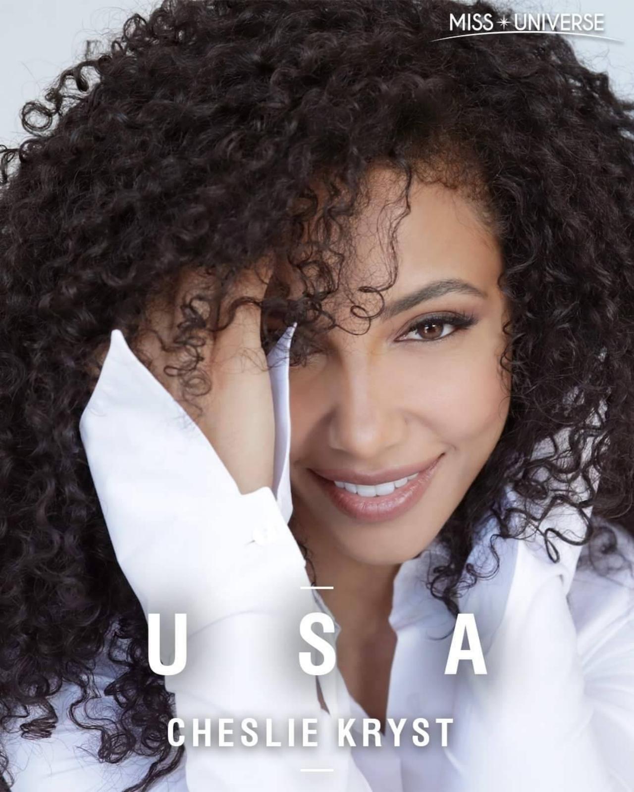 "ระวัง! เจ้าภาพ Cheslie Kryst เชสลีย์ ไคร์ต มิส USA เป็นสาวผิวสี สตรองจริง ลุคผมฟูเก๋ๆ ดีกรีทนายความ สตอรี่ธรรมดาซะที่ไหน สู้มาตั้งแต่ปี 2017 จนปีนี้ทำตามฝันสำเร็จ ได้เป็นตัวแทนสาวอเมริกัน ซึ่งจัดประกวดในแอตแลนตา เมืองคนผิวสี ประกอบกับไหวพริบระดับทนายความ คาดสายสะพาย USA ถือเป็นคู่แข่งที่น่ากลัว