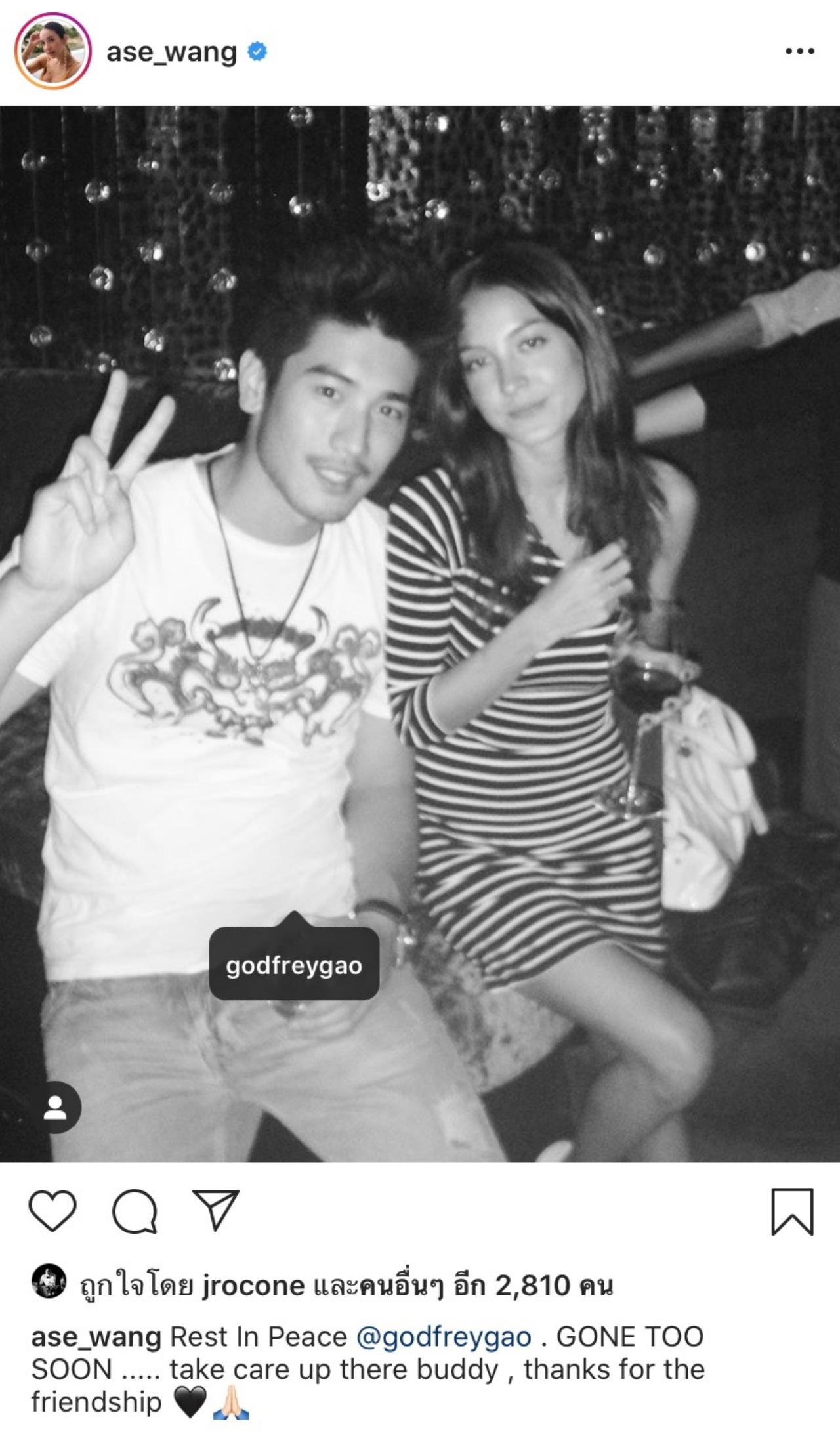 โดยสาวโอซา ได้โพสต์รูปคู่กับหนุ่มเกาอี้เสียงและข้อความอาลัยเพื่อนว่า “Rest In Peace @godfreygao . GONE TOO SOON ..... take care up there buddy , thanks for the friendship” (ขอให้ไปสู่สุคตินะ จากไปเร็วเกินไป ดูแลตัวเองด้วยนะเพื่อน ขอบคุณสำหรับมิตรภาพ) ทางบันเทิงไทยรัฐออนไลน์ก็ขอแสดงความเสียใจกับครอบครัวของเกาอี้เสียงอีกครั้งนะคะ