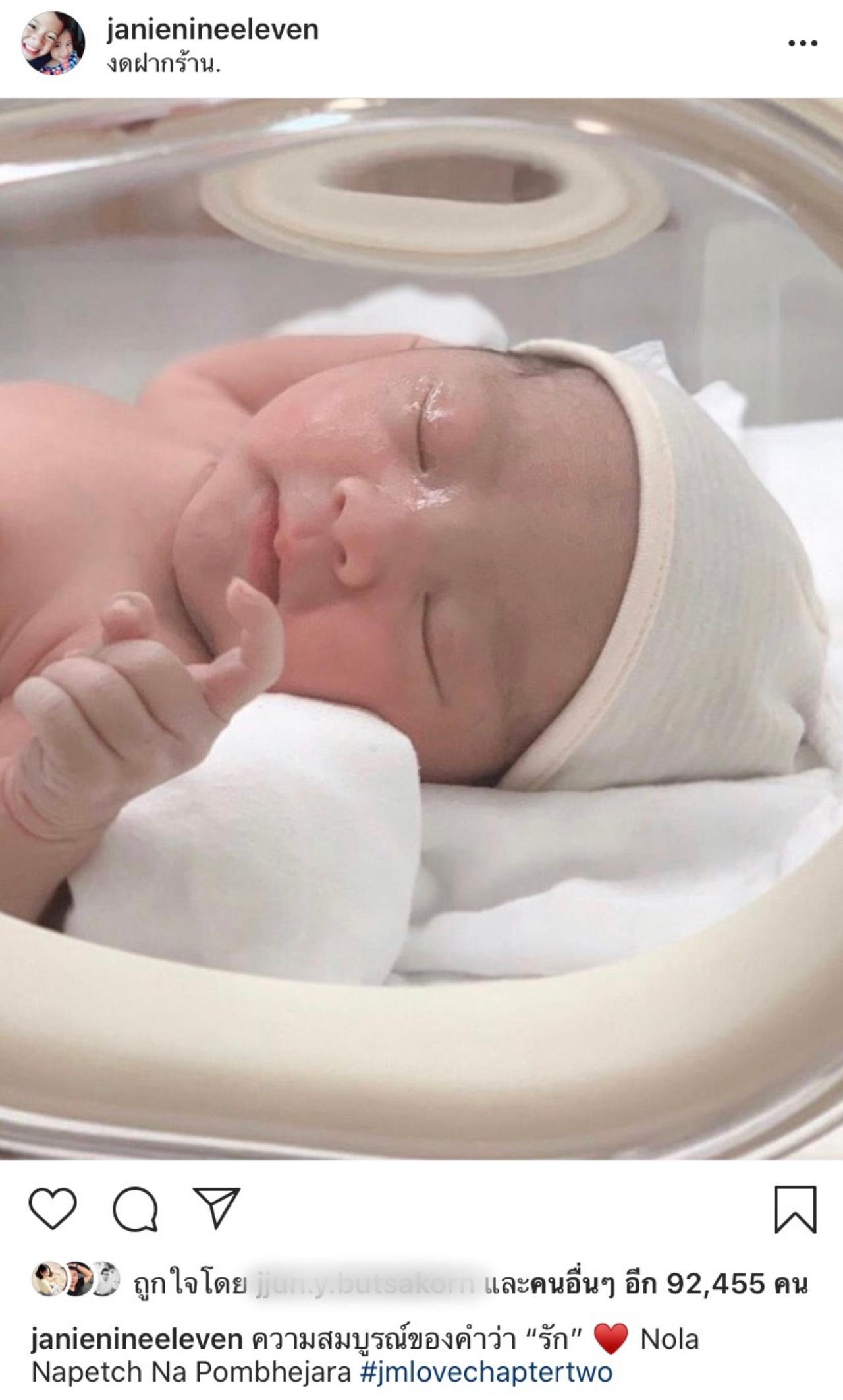 หลังจากที่ปล่อยให้หลายคนสงสัยว่านางเอกสาว เจนี่ อัลภาชน์ ณ ป้อมเพชร ตั้งท้องลูกแฝดหรือไม่ วันนี้ก็ได้คำตอบที่ทำให้ทุกคนหายสงสัยแล้ว เมื่อสาวเจนี่ คุณแม่มือใหม่ และมิกกี้ คุณพ่อป้ายแดง ได้โพสต์รูปลูกสาวลงอินสตาแกรมของตัวเอง พร้อมแคปชั่นเหมือนกันว่า “ความสมบูรณ์ของคำว่า “รัก” ♥️ Nola Napetch Na Pombhejara #jmlovechaptertwo”