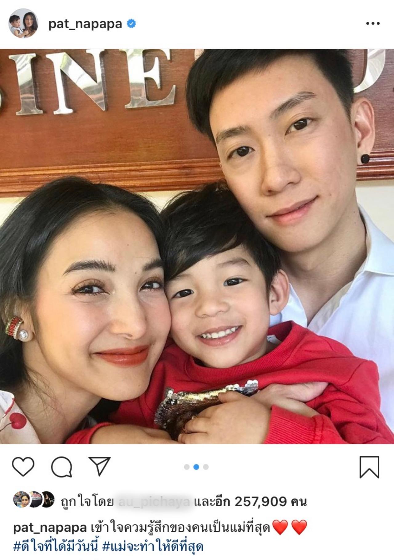 และล่าสุดสาวแพทก็ได้โพสต์รูป 3 คนพ่อแม่ลูก อยู่ด้วยกันอย่างพร้อมหน้าพร้อมตา งานนี้ทำเอาแฟนๆ ต่างเข้ามากดไลค์และคอมเมนต์แซวในความหล่อของน้องเรซซิ่งว่าหล่อมาก งานนี้คุณแม่แพทลงรูปพ่อลูกอยู่ด้วยกันแล้ว แฟนๆ คงสบายใจไม่ดราม่ากันแล้วนะ