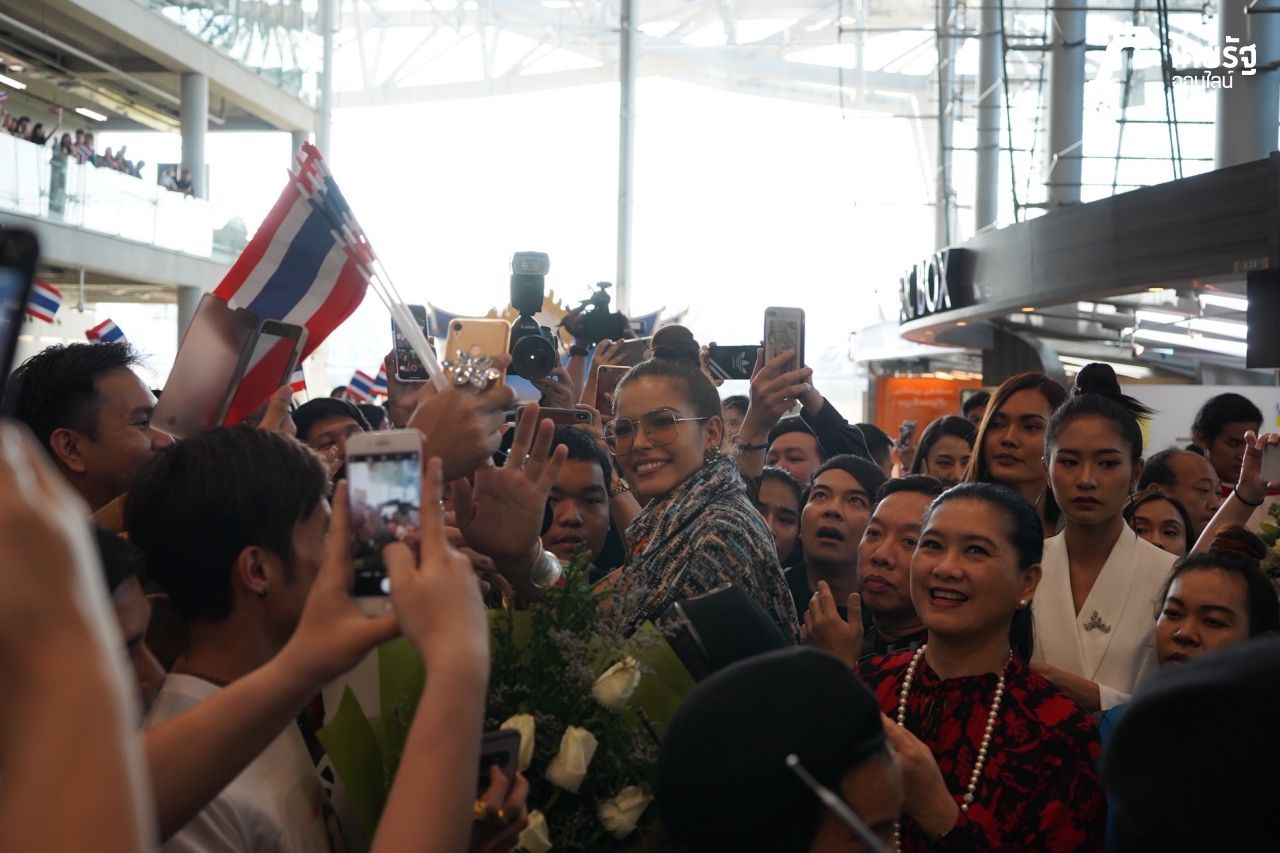 ไม่เกินคาด แฟนนางงามแห่มาต้อนรับ การกลับไทยอย่างอบอุ่นยิ่ง ฟ้าใส ปวีณสุดา ดรูอิ้น มิสยูนิเวิร์สไทยแลนด์ Miss Universe Thailand 2019 บินกลับถึงไทยแล้ว แฟนนางงามมารอกันอย่างเยอะ ที่สนามบินสุวรรณภูมิ ยังสวยสะพรึง ยังยิ้มได้ ถึงแม้จะไม่ได้มงมา