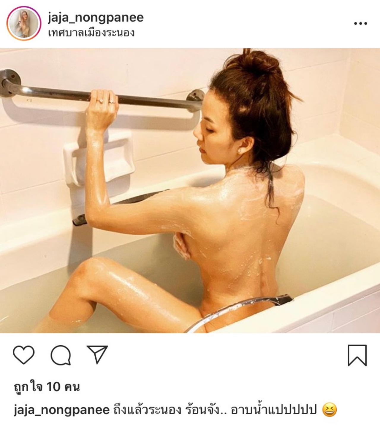 “ถึงแล้วระนอง ร้อนจัง..อาบน้ำแปปปปป” งานนี้หลังจากที่สาวจ๊ะลงรูปดังกล่าวไป ก็มีแฟนๆ เข้ามาคอมเมนต์แซวให้สาวจ๊ะหันหน้ามามากมาย บ้างก็บอกว่าอยากไปช่วยถูหลัง งานนี้สาวจ๊ะยังอารมณ์ดี บอกกับทุกคนต่อว่า ที่ร้อนไม่ใช่อากาศ แต่เป็นร้อนเงินนั่นเอง.
