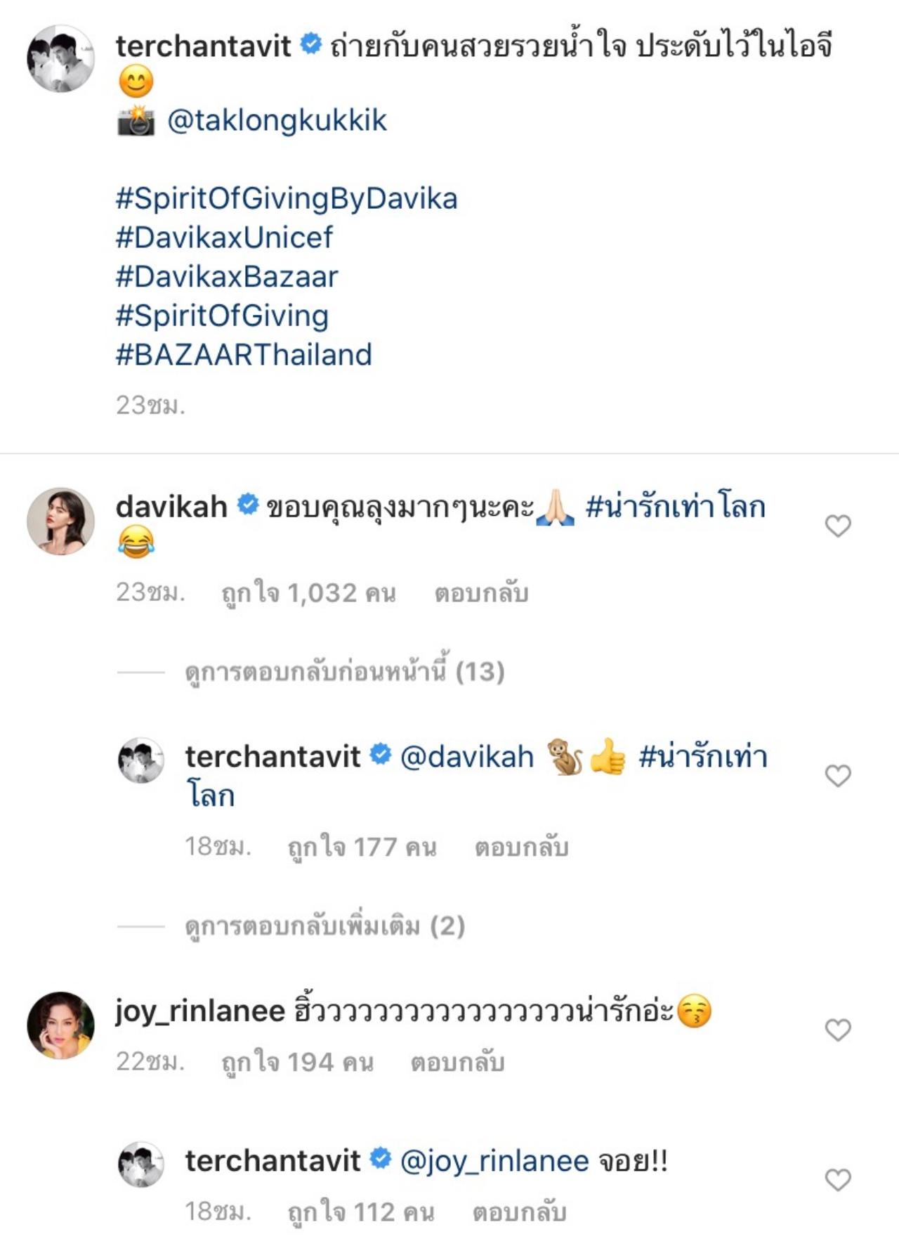 ยังคงหวานกันอย่างต่อเนื่อง สำหรับคู่ของ เต๋อ ฉันทวิชช์ และ นางเอกสาว ใหม่ ดาวิกา เพราะนานๆ จะมีรูปคู่ลงมาให้แฟนๆ ได้แซวกันที แค่พอลงที ทั้งแคปชั่นและคอมเมนต์ บอกเลยว่า หวานหนักมาก ทำเอาคนโสดอิจฉากันไปทั่วบ้านทั่วเมือง