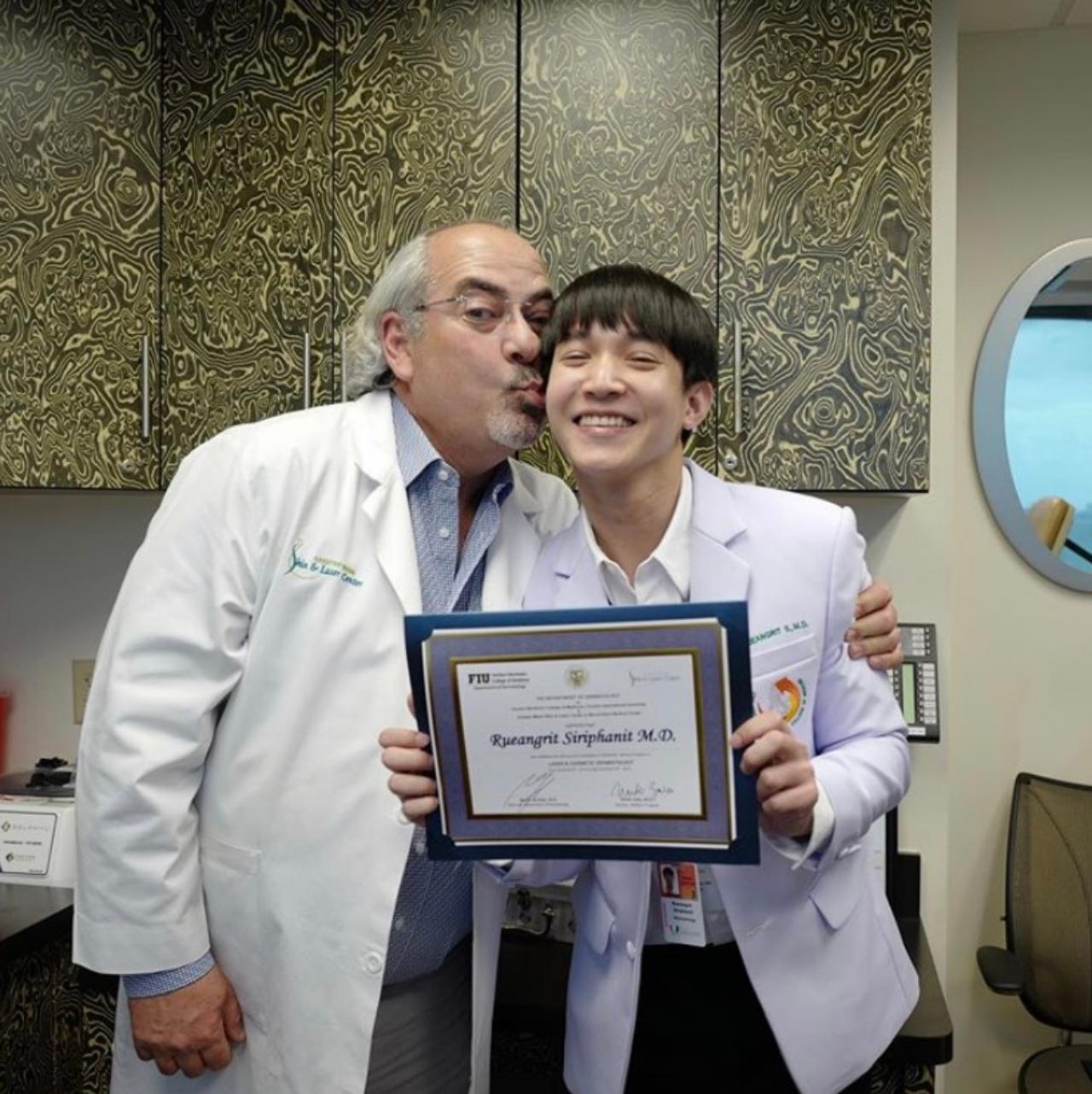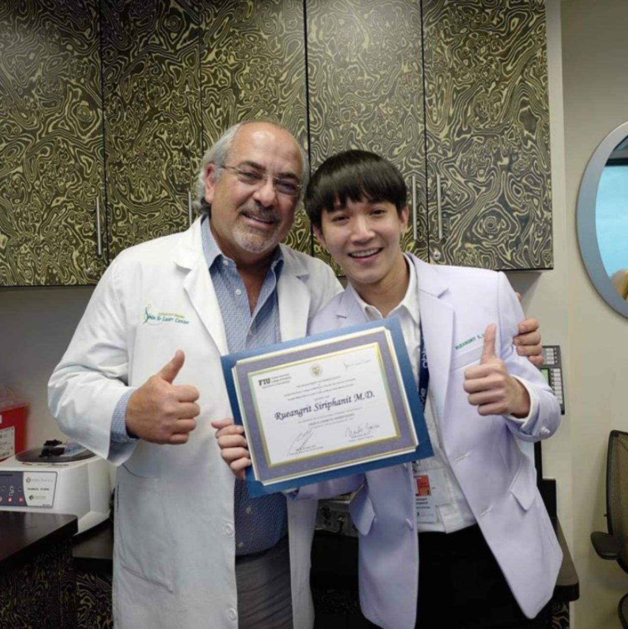 และล่าสุด เจ้าตัวลงทุนควักกระเป๋าไปเรียนต่อที่โรงเรียนแพทย์ที่สหรัฐอเมริกาเป็นเวลา 1 เดือน ซึ่งเป็นการศึกษาเรื่องผ่าตัดผิวหนัง เนื้องอก มะเร็ง การใช้เลเซอร์ โดยหมอริทได้บินไปเรียนเมื่อวันที่ 7 ธันวาคมที่ผ่านมา