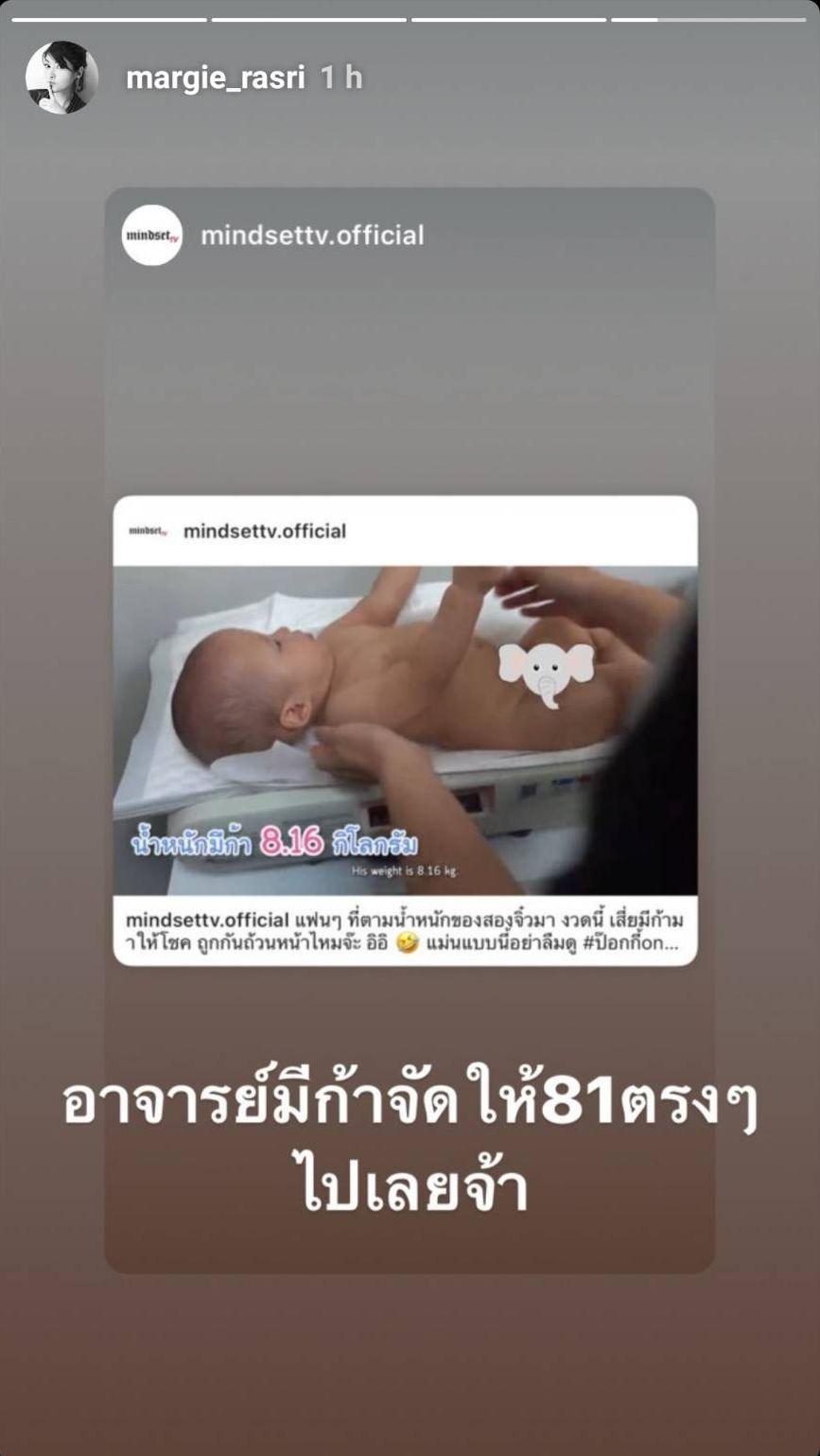 โดยในไอจี @mindsettv.official ได้โพสต์ภาพ น้องมีก้า ชั่งน้ำหนักลงไอจี และเขียนข้อความว่า “แฟนๆ ที่ตามน้ำหนักของสองจิ๋วมา งวดนี้ เสี่ยมีก้ามาให้โชค ถูกกันถ้วนหน้าไหมจ๊ะ อิอิ แม่นแบบนี้อย่าลืมดู #ป๊อกกี้ontherunthefamily ทุก EP. กันนะ #คนนี้มีก้าครับ #คนนี้มีญ่าค่ะ #mindsettv” และยังโพสต์ภาพลงไอจีสตอรี่ด้วย ซึ่ง มาร์กี้ ได้รีโพสต์ไอจีสตอรี่ และเขียนข้อความว่า “อาจารย์มีก้าจัดให้ 81 ตรงๆ ไปเลยจ้า”