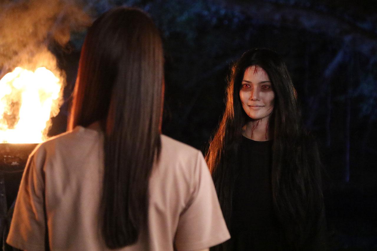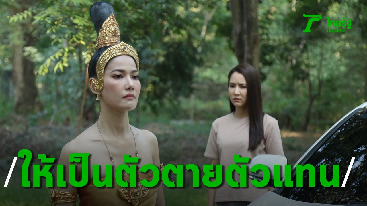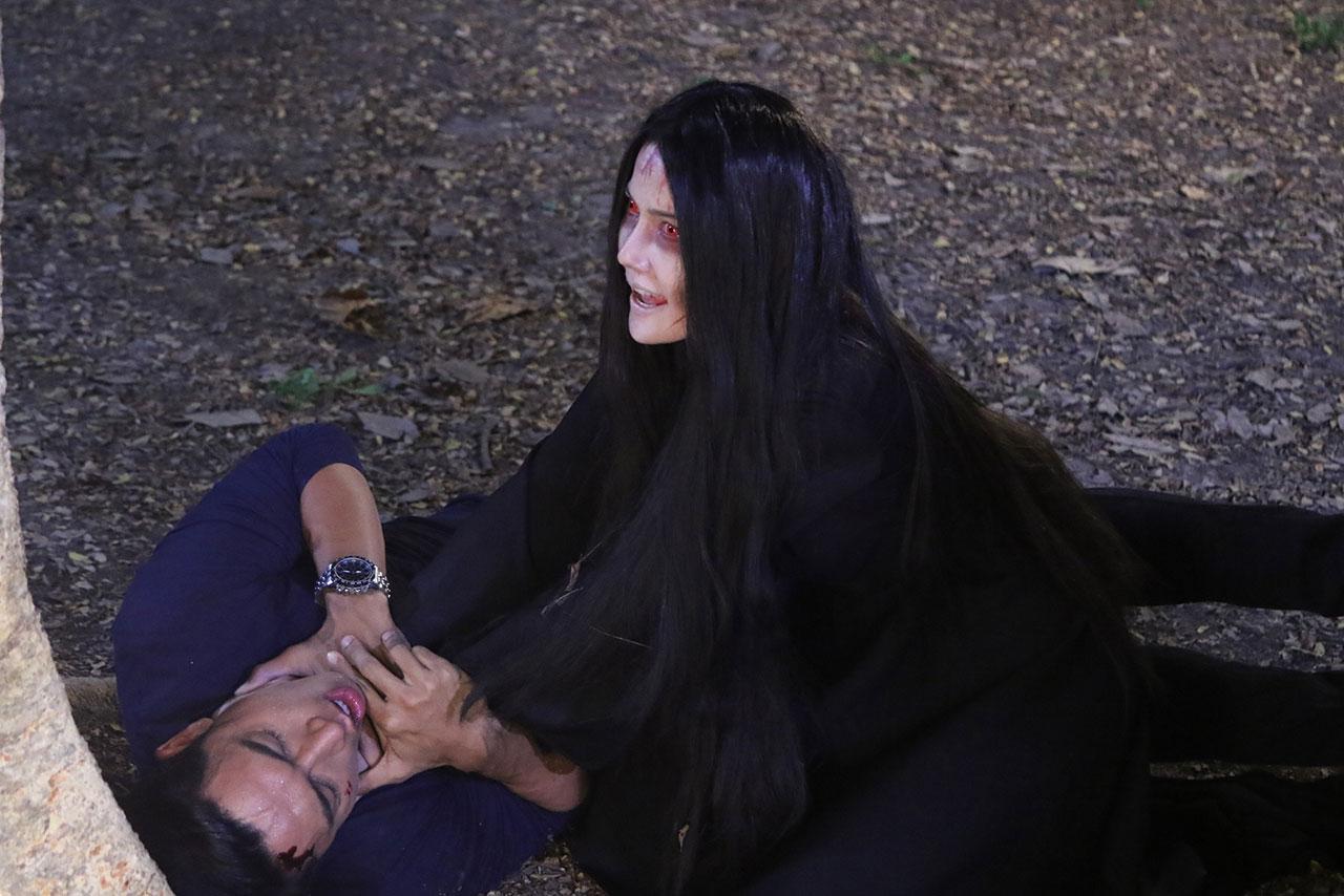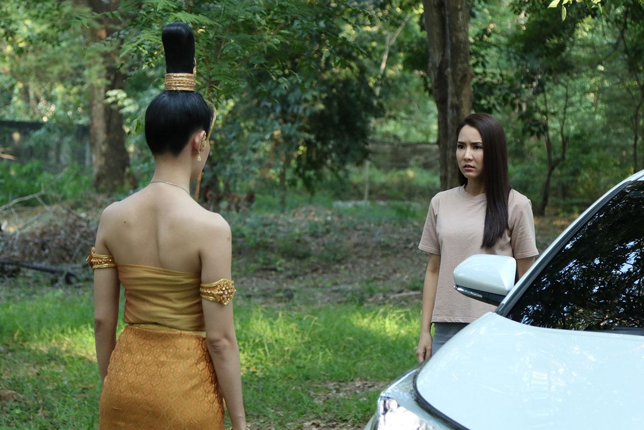 เป็นฉากที่ เมธาวลัย (จั๊กจั่น-อคัมย์สิริ) กำลังขับรถแล้วรู้สึกเหมือนมีใครจ้องมองอยู่ข้างหลัง แต่ก็ต้องเบรกกะทันหันเพราะมีของขวางทางรถ เมธาวลัยรีบลงมาดู ยง (เชน-ณัฐวัฒน์) ย่องมาจากด้านหลังดึงสร้อยพระจากเมธาวลัยไป เมธาวดี (น้ำหวาน-กรรณาภรณ์) ได้ทีสะกดจิตเมธาวลัย ลวงไปฆ่า ประสุต (กอล์ฟ-อนุวัฒน์) ตามมาช่วย และโดนเมธาวดีบีบคอปางตาย