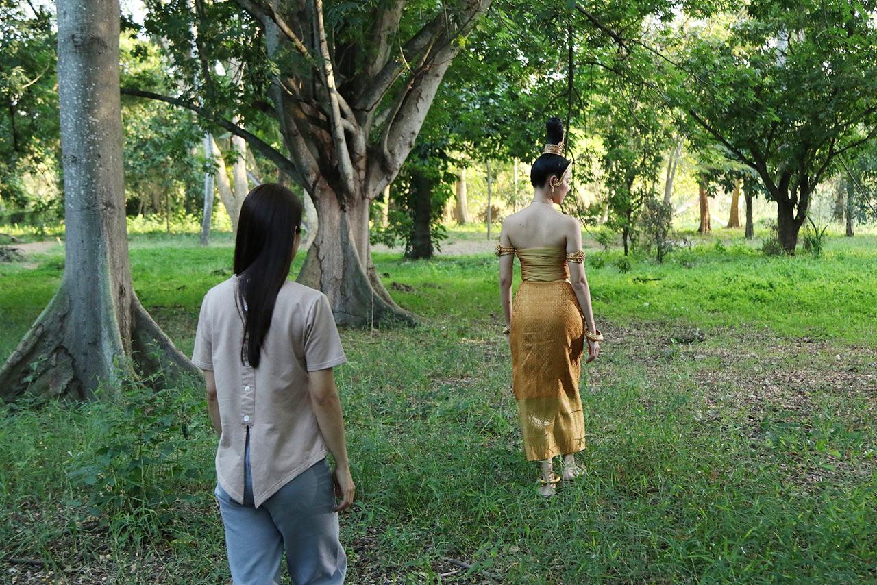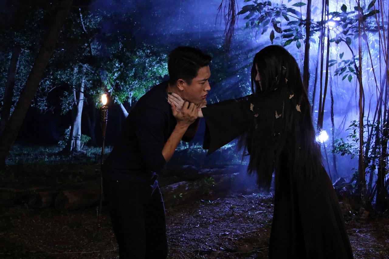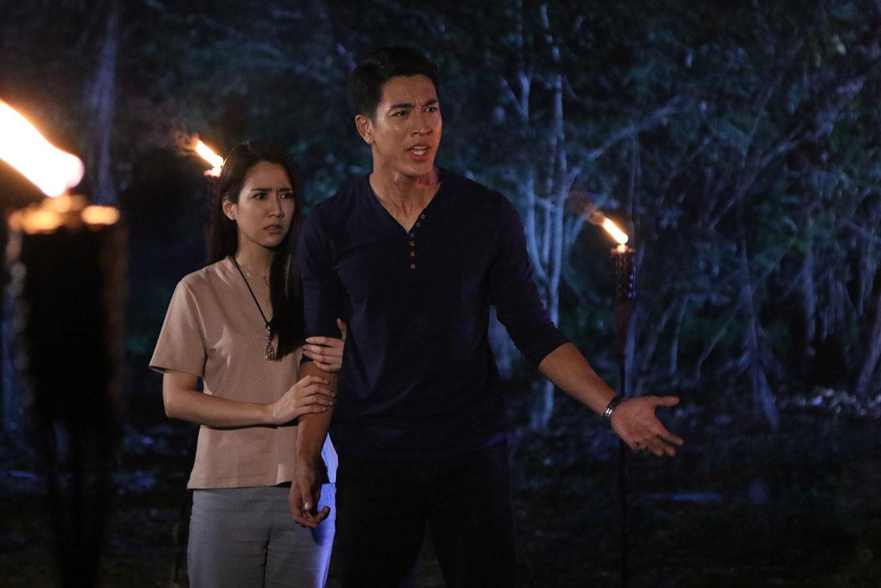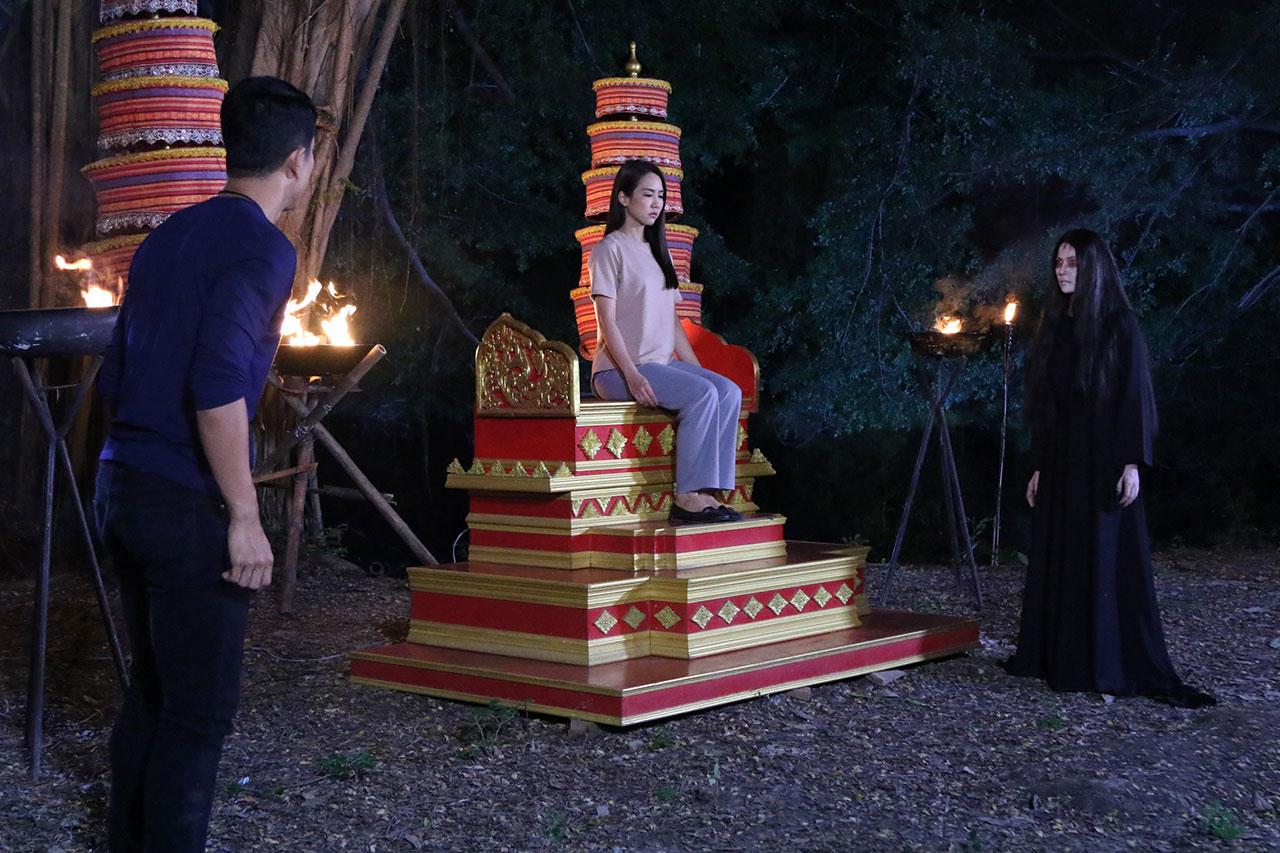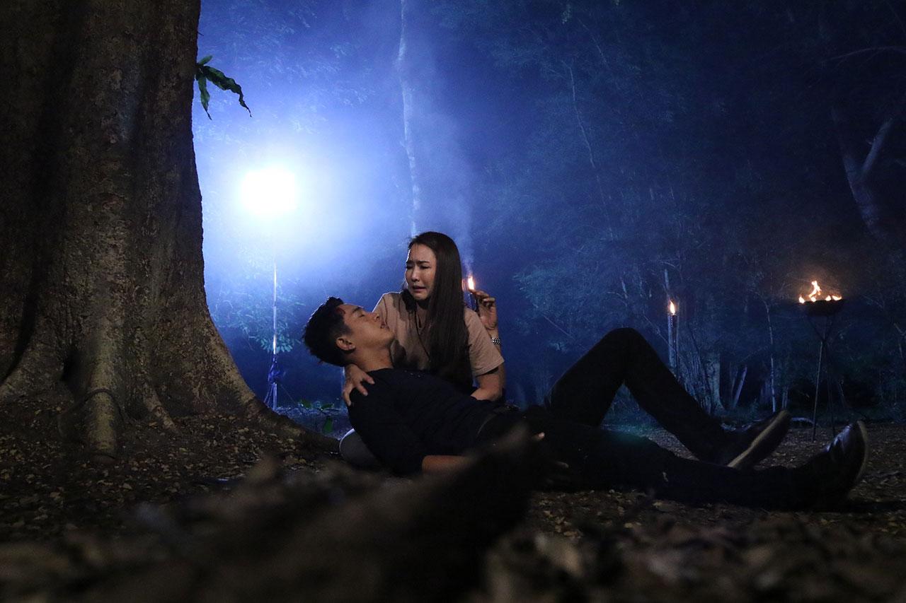 เบื้องหลังฉากนี้ทีมงานยกกองไปถ่ายทำกันที่ ป่าบ้านสวนกลิ่นแก้ว จ.นนทบุรี เป็นซีนใหญ่ที่พูดเลยว่าเข้มข้นมาก เพราะนักแสดงทุกคนบทยาวมาก และต้องดราม่ากันด้วย แต่ถึงจะบทยาวซีนยากแค่ไหน ก็ไม่มีอะไรมาทำลายสามนักแสดงอย่าง กอล์ฟ จั๊กจั่น น้ำหวานได้ เพราะเบื้องหลังก็ยังคงฮากันสุดๆ จนลืมไปเสียสนิทว่านี่คือละครดราม่านะคะเนี่ย ฮ่าๆ ถึงเวลาผู้กำกับ ภูมิภัทร สังวาลย์วรกุล เรียกนักแสดงมาซ้อมคิวต่อบท เพราะแอ็กชั่นเยอะมาก ด้านน้ำหวานที่ซีนนี้ต้องแต่งสวยก่อน แล้วต้องเปลี่ยนมาแต่งผี ยกความอึดให้จริงๆ