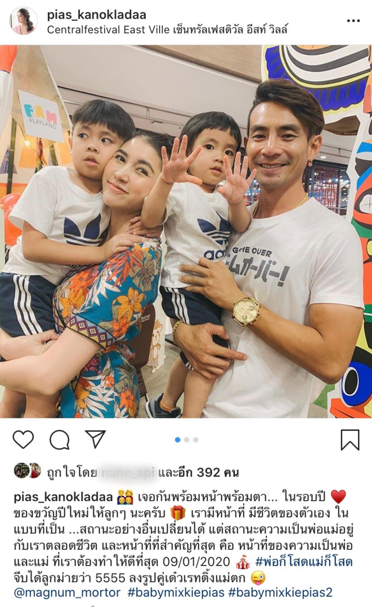 ล่าสุด สาวเพี๊ยชก็ได้ลงรูปครอบครัวอยู่ด้วยกันพร้อมหน้าพร้อมตา พ่อแม่ลูก และแคปชั่นว่า “เจอกันพร้อมหน้าพร้อมตา...ในรอบปี ของขวัญปีใหม่ให้ลูกๆ นะครับ เรามีหน้าที่ มีชีวิตของตัวเอง ในแบบที่เป็น.. สถานะอย่างอื่นเปลี่ยนได้ แต่สถานะความเป็นพ่อเป็นแม่อยู่กับเราตลอดชีวิต และหน้าที่ที่สำคัญที่สุดคือ หน้าที่ของความเป็นพ่อและแม่ ที่เราต้องทำให้ดีที่สุด 09/01/2020 #พ่อก็โสดแม่ก็โสด จีบได้ลูกม่ายว่า 5555 ลงรูปคู่เดี๋ยวเรตติ้งแม่ตก”.