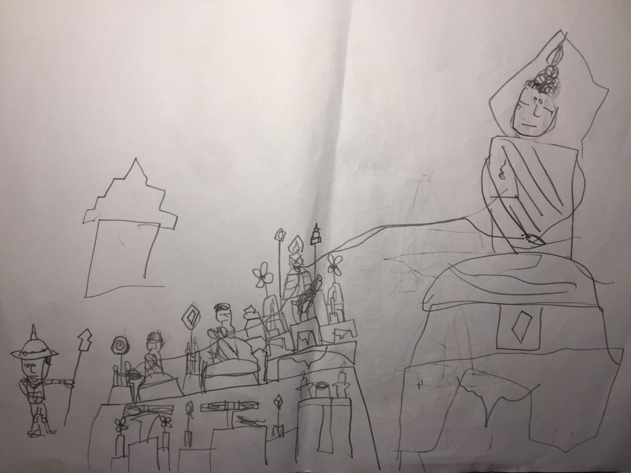 วาดรูปได้ตั้งแต่อายุประมาณ 3 ขวบกว่า เราเองก็รู้สึกภูมิใจกับสิ่งที่เค้าเลือกทำและเค้าชอบ ปีนี้เค้าชวนผมไปไหว้ศาลหลักเมือง และวัดพระแก้ว เด็กคนอื่นคงอยากไปเล่นของเล่น แต่ลูกชายผมอยากไปไหว้พระครับ ก็คิดว่าต้องพาเขาไป