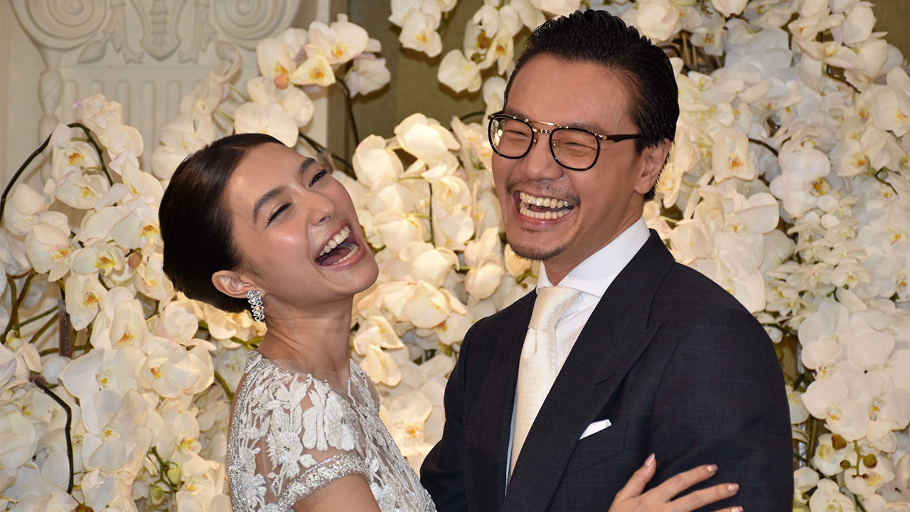นางเอกสาวมิว-นิษฐา จิรยั่งยืน และสามี เซนต์-ธราภุช คูหาเปรมกิจ หัวเราะร่าเริงชื่นมื่นระหว่างการแถลงข่าวในงานฉลองสมรสที่ทั้งสองจัดขึ้นอย่างหรูหราที่โรงแรม ดิ แอทธินี โฮเทลแบงค็อก เมื่อค่ำวันที่ 10 ม.ค. โดยฝ่ายชายเผยหลังแต่งอยากมีลูกแต่ต้องมิวเคลียร์คิวการแสดงที่รับงานไว้ให้หมดก่อน และสัญญาจะสร้างครอบครัวดูแลมิวอย่างดี.