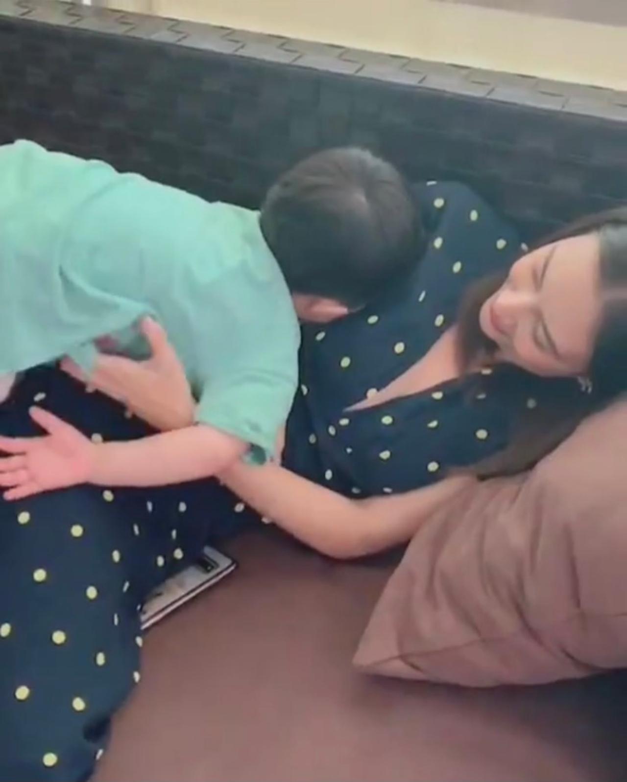 และล่าสุด แซมมี่ เคาวเวลล์ นางเอกช่อง 7 ได้โพสต์คลิปน่ารักๆ ที่หนุ่มๆ หลายคนเห็นแล้วจะต้องรู้สึกอิจฉาน้องพายุมากๆ เพราะเป็นคลิปที่น้องพายุได้เข้าไปนอนอ้อนสาวแซมมี่ด้วยความรักในคุณน้าคนสวย งานนี้ไม่รู้ว่าแม่เห็นแล้วจะว่าอย่างไร แต่บอกได้เลยว่าลีลาอ้อนสาวของพายุไม่ธรรมดาแน่นอน