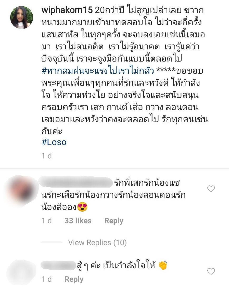 หลังจากนั้นก็มีแฟนๆ เข้ามาคอมเมนต์ให้กำลังใจหลายคน ให้อภัยกันดีแล้ว ขอให้เป็นอย่างนี้ตลอดไป บ้างก็บอกว่ากานต์นี่แหละที่เอาเสกอยู่ แต่ก็มีชาวเน็ตหลายคนที่คอมเมนต์แรงๆ เกี่ยวกับ กานต์ เช่นกัน โดยหาว่ากำจัดเด็กตาดำๆ ไปได้เพราะจะเอา เสก กลับมา ไม่เห็นด้วยกับการเอาชนะที่ไร้ซึ่งมนุษยธรรม ฯลฯ.