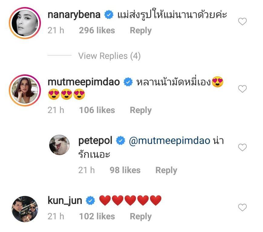 นอกจากนี้ยังมีแฟนคลับแห่เข้ามาคอมเมนต์กันอย่างมากมาย บ้างก็บอกว่าน่ารักทั้งแม่ทั้งลูก แถมยังมีมาแซวอีกว่า ไปเที่ยวไหนกัน คุณพ่อ มิกกี้ ก็ได้มาตอบแทนแบบขำๆ ว่า “ไปมะลอง กองแกง กะแลงแกงกอง ครับพี่”.