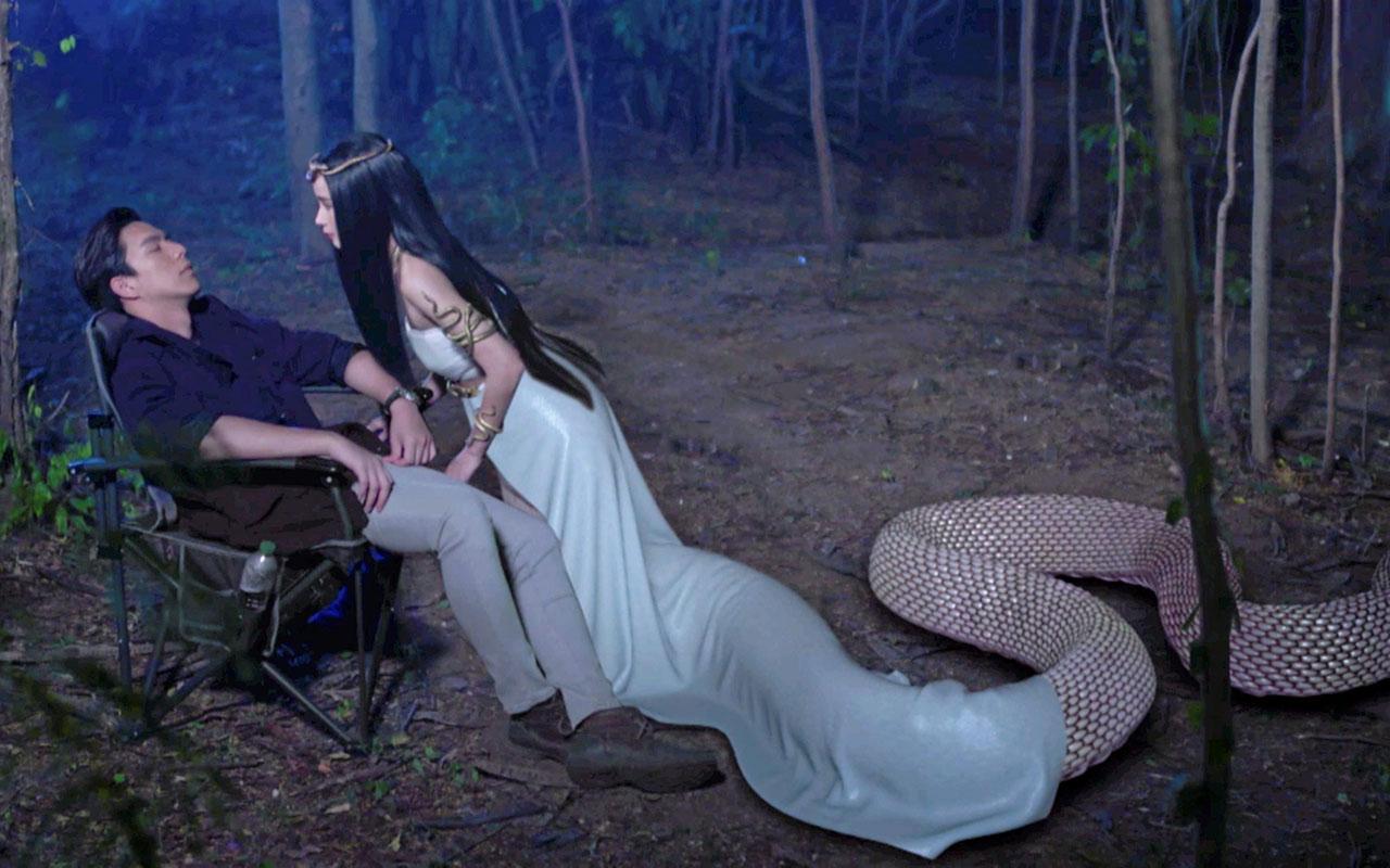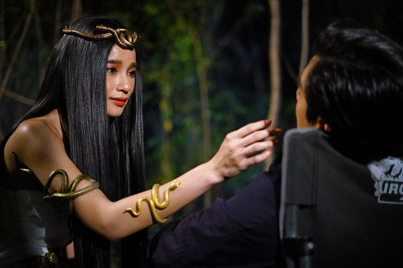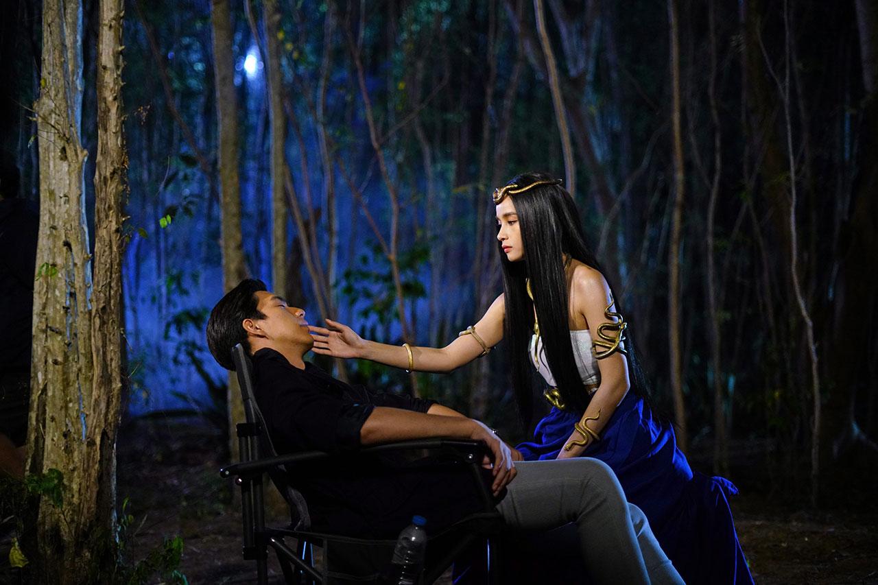 ฉากนี้ยกกองไปถ่ายทำไกลถึงปราสาทหินพนมรุ้ง จ.บุรีรัมย์ โดยใช้บริเวณป่าทึบใกล้ๆปราสาทที่มีบรรยากาศเงียบสงัด ทำเอา วิว ที่ต้องรับบทนางพญางูสัมผัสได้ถึงความขลังจนต้องยกมือไหว้เพื่อขอให้การถ่ายทำราบรื่น ตอนซ้อม ผกก.ก็เน้นกับ วิว สื่ออารมณ์ทางสายตาที่ได้เจอผู้ชายที่ตัวเองปิ๊ง อีกทั้งยังต้องเล่นให้สอดคล้องกับร่างนางพญางูที่ต้องไปทำซีจีด้วย