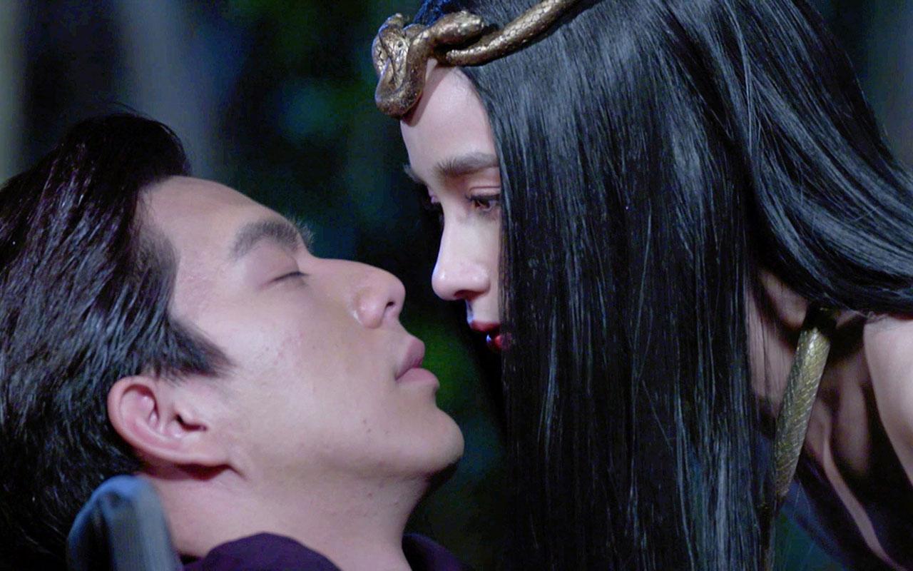 ส่วน ไบร์ท สบายๆมาก แค่หลับรอเท่านั้น (ฮา) เมื่อพร้อมก็ถ่ายจริงทันที เริ่มที่ ไบร์ท นอนหลับอยู่กลางป่า สักพัก วิว ก็เคลื่อนร่างเข้ามาใกล้ๆซึ่งในจอจะเห็นท่อนบนเป็นคน ส่วนท่อนล่างเป็นงูสวยสง่า ทันทีที่ได้เห็น ไบร์ท วิว ก็ใช้สายตาแห่งความรักจับจ้องมองอย่างหยาดเยิ้ม ก่อนจะเอื้อมมือไปสัมผัสที่หน้า ไบร์ท อย่างแผ่วเบา แล้วค่อยๆโน้มหน้าลงไปเพื่อหวังจะจูบชายหนุ่มที่ตนเองรอคอยข้ามภพข้ามชาติ...ห้ามพลาดชมตำนานความรักระหว่างเจ้าแม่นางพญางูพันปีกับเจ้าชายหนุ่มใน “อสรพิษ” เริ่มตอนแรกคืนนี้ 20.10 น. ทางช่องวัน 31.