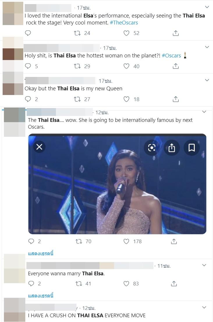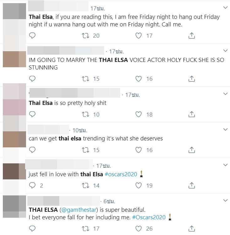 ซึ่งในการร่วมงานครั้งนี้ แก้ม ได้รับคำชมอย่างล้นหลาม ตั้งแต่ช่วงเดินพรมแดง ที่เจ้าตัวสวยสง่ามากๆ ในชุดจากแบรนด์ POEM รวมไปถึงช่วงร้องเพลงบนเวทีที่แม้จะได้เห็นเจ้าตัวในช่วงเวลาสั้นๆ แต่ก็สะกดใจคนดูได้ไม่น้อยเลยทีเดียว และในโลกทวิตเตอร์ นอกจากจะมีแฟนๆ ชาวไทยต่างชื่นชมและภูมิใจในตัวของ แก้ม มากๆ แล้ว ยังมีชาวต่างชาติอีกหลายคนที่ชื่นชม แก้ม มากๆ เช่นกัน โดยเรียกว่า Thai Elsa และบอกว่าเสียงไพเราะมาก สวยมาก ดึงดูดสายตามาก บ้างก็บอกว่าหลงรัก บางคนถึงขั้นบอกว่าอยากแต่งงานด้วยเลยทีเดียว