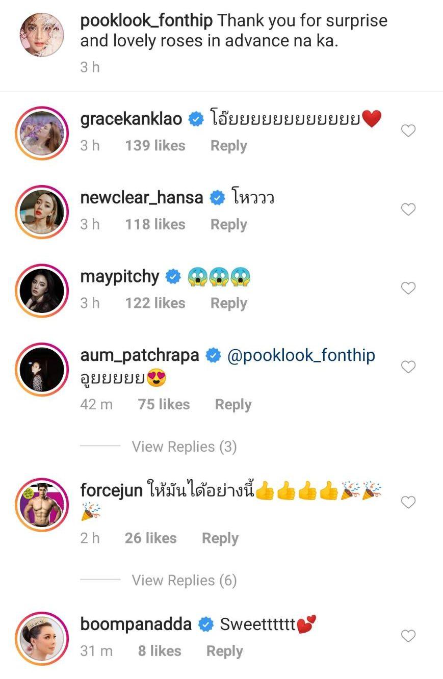 งานนี้นอกจากจะมีแฟนๆ แซวความหวานของทั้งคู่แล้ว ยังมีคนบันเทิงอีกหลายคนเข้ามาคอมเมนต์แซวเพียบ อาทิ อั้ม พัชราภา, เมย์ พิชญ์นาฏ, เกรซ กาญจน์เกล้า, นิวเคลียร์ หรรษา, บุ๋ม ปนัดดา, นาว ทิสานาฏ ฯลฯ เรียกว่าเป็นเซอร์ไพรส์ชุดใหญ่ไฟกะพริบที่หลายคนเห็นแล้วต้องว้าวจริงๆ.