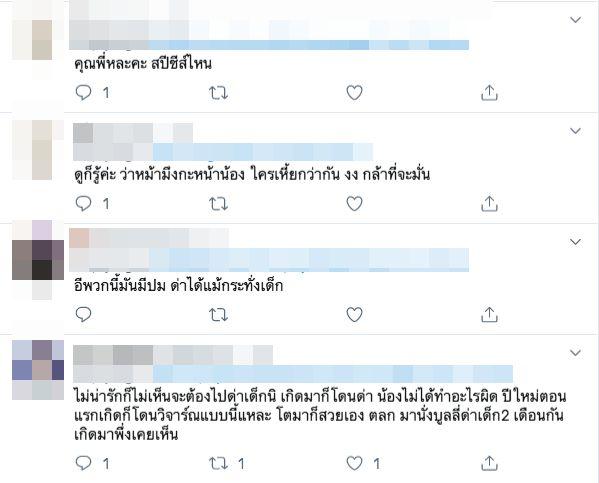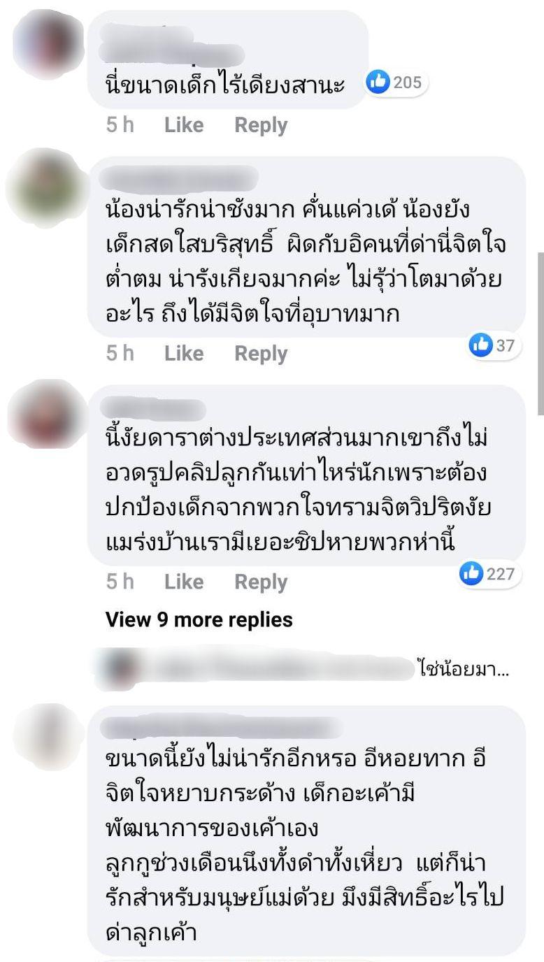 จากนั้นก็มีชาวเน็ตหลายคนเข้ามาวิจารณ์ถึงผู้ใช้ทวิตเตอร์คนดังกล่าวเป็นจำนวนมาก พร้อมทั้งบอกว่าสงสาร น้องโนล่า เด็กที่ไร้เดียงสา น่ารักตามประสาเด็ก แต่ผู้ใหญ่ที่โตมามีความคิดไม่แยกแยะทั้งต่ำและสกปรก น่ารังเกียจ โตมาในสังคมแบบไหนถึงเป็นคนแบบนี้ บ้างก็บอกว่าเด็กจะมีพัฒนาการของเขาเอง ช่วงเดือนแรกลูกของตนก็ดำและเหี่ยว แต่ก็น่ารักสำหรับมนุษย์แม่ แล้วคนที่ด่ามีสิทธิ์อะไรไปด่าลูกคนอื่น ฯลฯ