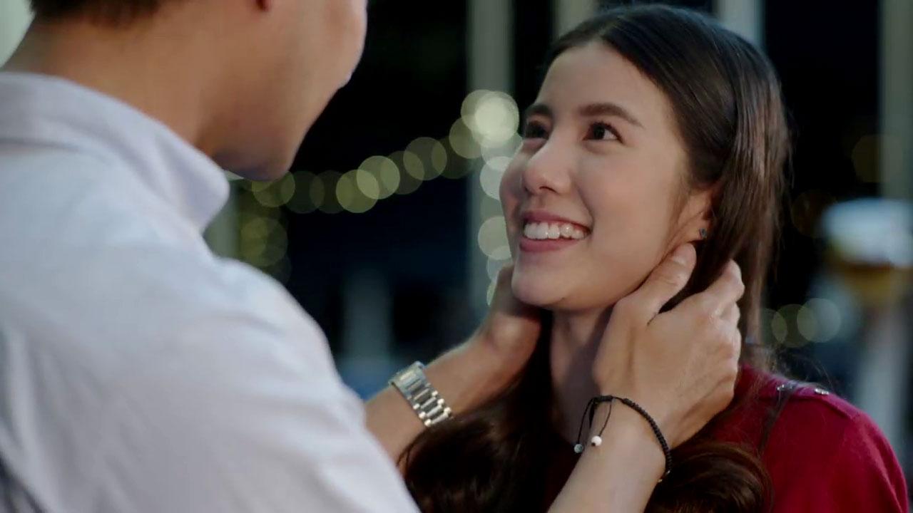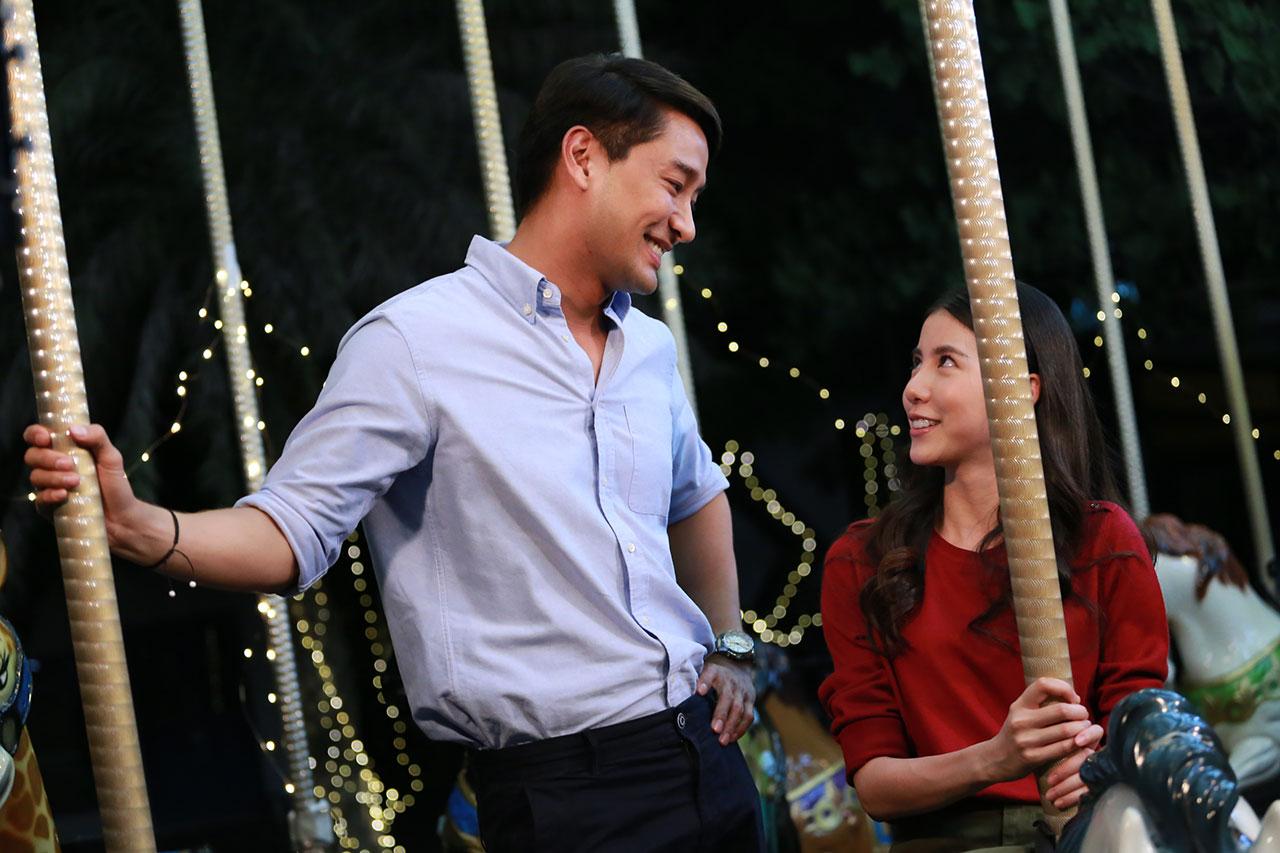 เมื่อทุกฝ่ายพร้อม ผู้กำกับจึงสั่งเดินกล้องทันที เริ่มที่ ป้องพาเอสเธอร์มาเคาต์ดาวน์ปีใหม่ด้วยกันที่สวนสนุก ทำเอาเอสเธอร์รู้สึกตื่นเต้นที่ได้ย้อนวัย จึงชวนป้องขึ้นไปเล่นม้าหมุน เพราะเป็นเครื่องเล่นโปรด เอสเธอร์เล่นไปก็เล่าเรื่องราวตอนเด็กให้ป้องฟังไปด้วยรอยยิ้ม ฟากป้องเห็นคนรักมีความสุขดีใจ ท่าทางสดใสของเอสเธอร์ ทำให้ป้องอดใจไม่ไหว จึงยื่นหน้าเข้าไปใกล้ๆ เป็นจังหวะเดียวกับที่เอสเธอร์หันมาพอดี นาทีนี้ทุกอย่างราวกับตกอยู่ในภวังค์ ทั้งคู่จูบกันหวานฉ่ำท่ามกลางบรรยากาศสุดโรแมนติก ก่อนป้องจะดึงเอสเธอร์มากอดด้วยความรักสุดหัวใจ