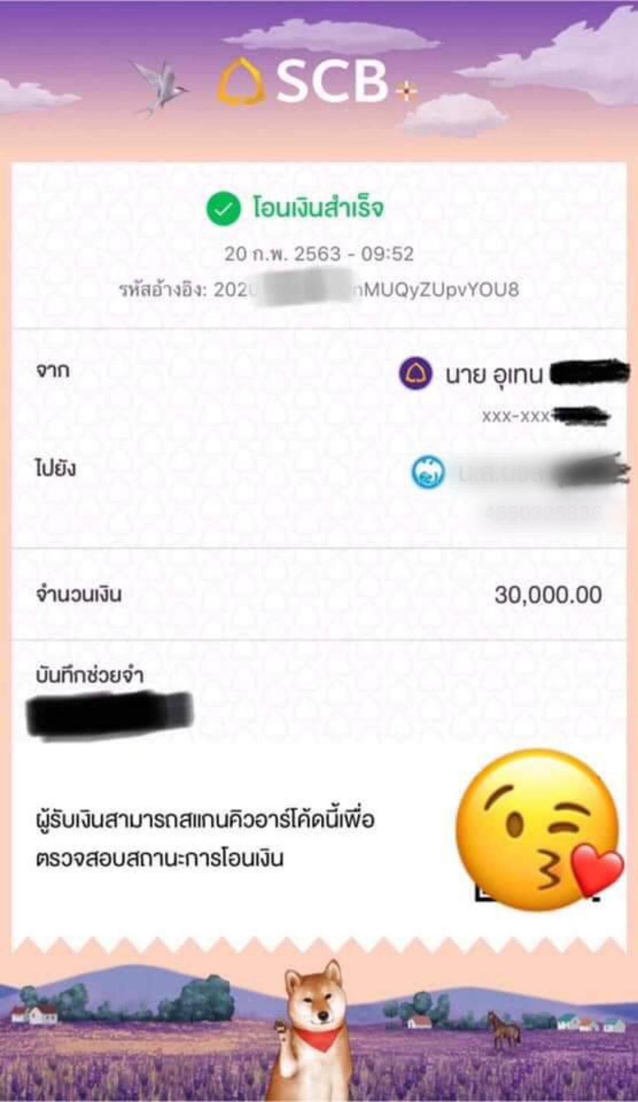 ในกรณีของน้องมีเรื่องของโพสต์สลิปการโอนเงินจำนวน 30,000 บาท ซึ่งใครโอนก็ไม่รู้ แต่ในสลิปการโอนมันชื่ออุเทน นามสกุลเค้าก็ไม่ได้เขียนขีดออก และหากสังเกตดูที่เค้าขีดออกที่มันก็ไม่ยาวพอเขียนพรหมมินทร์ นามสกุลพี่