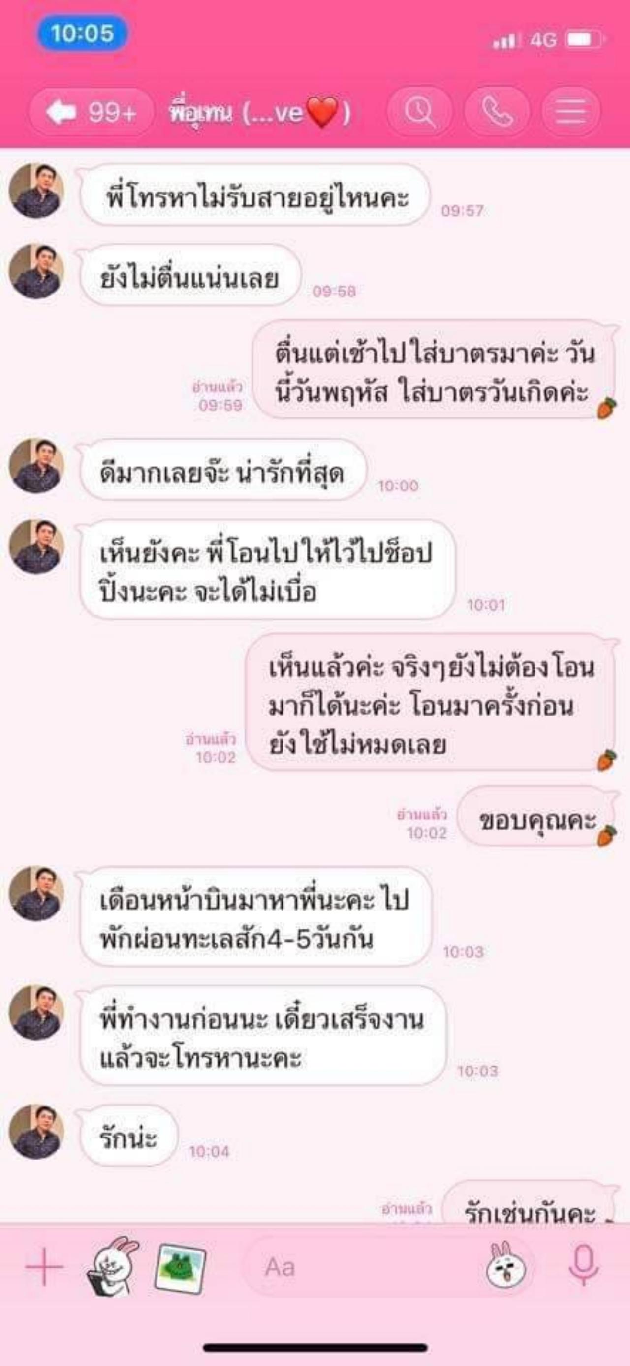 แล้วพอพี่ลงเครื่องที่อำนาจเจริญ ทางภรรยาก็บอกว่ามีเพจแบบนี้ๆ จากผู้หญิงคนนี้ๆ เค้าไปหามาหมดแล้วตอนแรกก็ยังไม่ได้เฉลยชื่อ แต่ตอนหลังเริ่มชี้มาทางพี่ พี่ก็ว่าพี่ไม่เคยโอนเงินอะไรให้ใครนะ