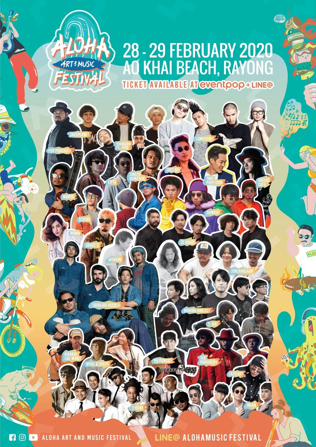 เป็นอีกหนึ่งเทศกาลดนตรีดีๆ ที่ไม่ควรพลาด สำหรับ Aloha Art & Music Festival 2020 คอนเสิร์ตริมชายหาดครั้งแรกที่มีศิลปินรวมตัวมากที่สุดในภาคตะวันออก ที่จะจัดขึ้นในวันที่ 28–29 กุมภาพันธ์ 2563 ณ หาดแหลมแม่พิมพ์ อ่าวไข่ จ.ระยอง โดยในครั้งนี้มีศิลปินหลากหลายแนวเพลงมาร่วมสร้างสีสันมากถึง 25 วง แถมยังมีกิจกรรมดีๆ นำขยะมาสร้างเป็นศิลปะได้อีกด้วย เรียกว่าได้รับความสุขทางเสียงเพลงแล้ว ยังได้ช่วยรักษาความสะอาด ฟื้นฟูสิ่งแวดล้อมไปด้วยกัน
