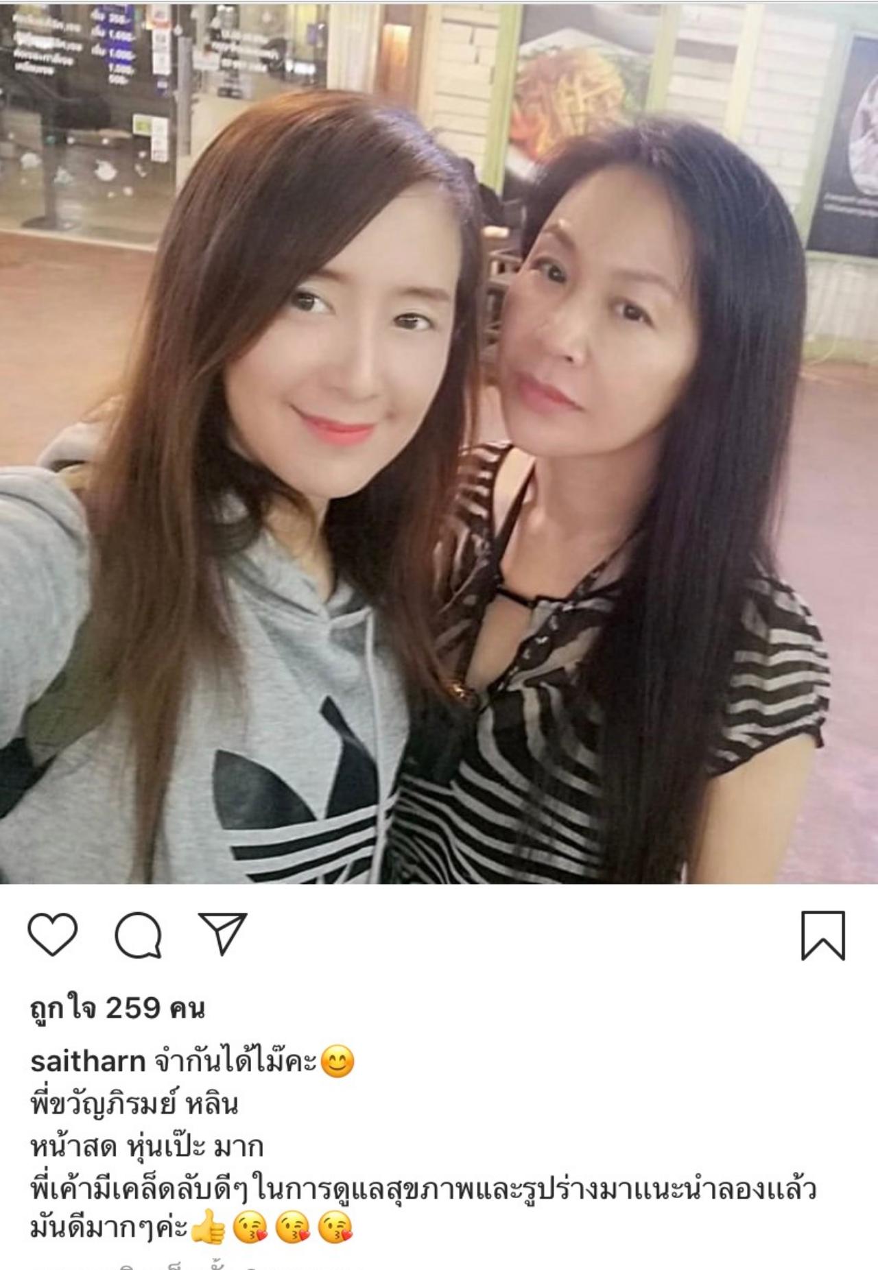 “จำกันได้ไม๊คะ พี่ขวัญภิรมย์ หลิน หน้าสด หุ่นเป๊ะ มาก พี่เค้ามีเคล็ดลับดีๆ ในการดูแลสุขภาพและรูปร่างมาแนะนำ ลองแล้วมันดีมากๆ ค่ะ” ซึ่งหลังจากที่สาวต่ายโพสต์รูปคู่กับนักแสดงรุ่นพี่ไป ก็มีแฟนๆ เข้ามาคอมเมนต์คิดถึงและถามไถ่ถึงขวัญภิรมย์ หลิน มากมาย