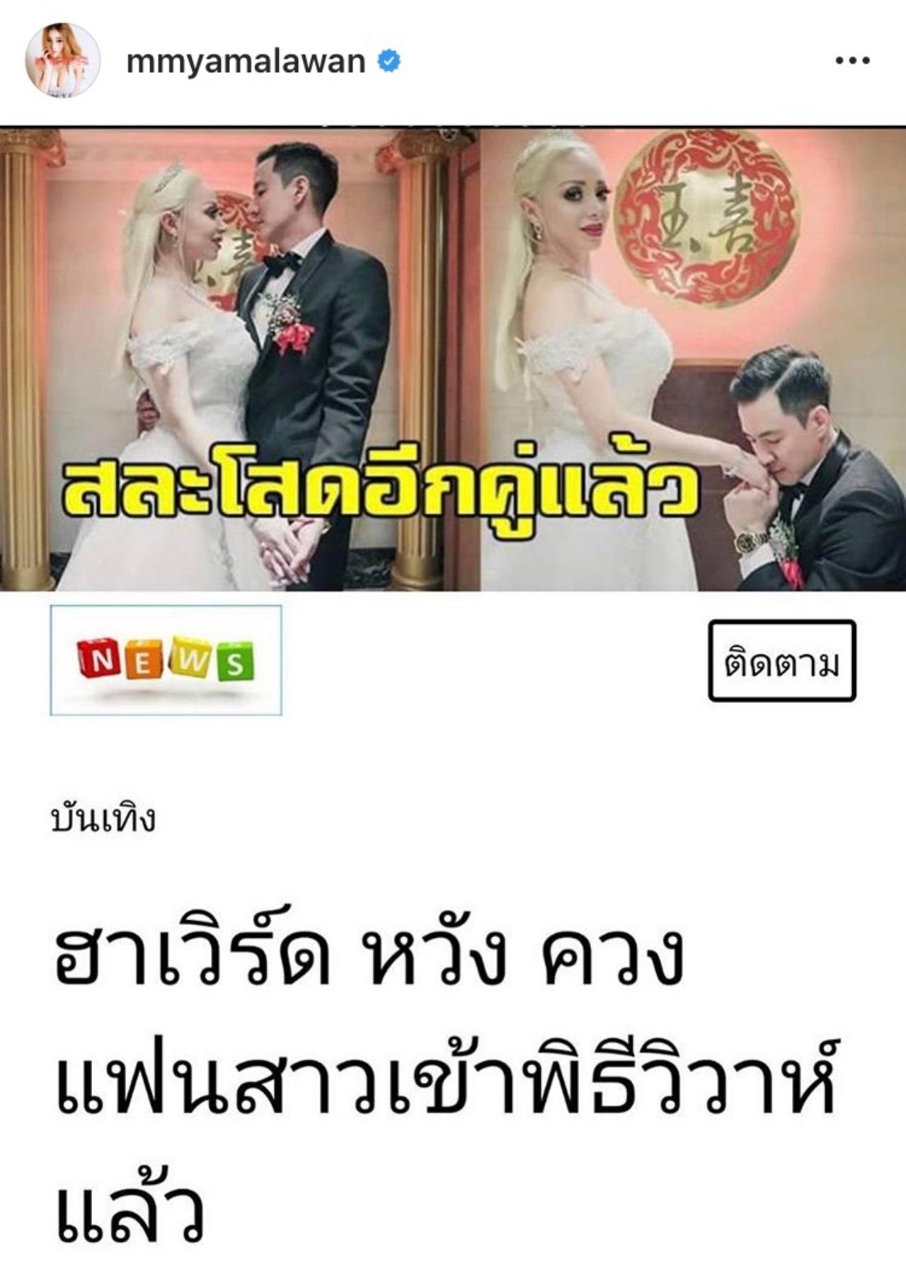 เลิกกันไปนานมาก สำหรับคู่ของ เอมมี่ อมลวรรณ กับ ฮาเวิร์ด หวัง ก่อนที่จะแยกกันอยู่อย่างถาวร ซึ่ง เอมมี่ อยู่ที่ไทย ส่วน ฮาเวิร์ด กลับไปอยู่ไทเป ไต้หวัน และล่าสุด ฮาเวิร์ด ได้โพสต์เพื่อประกาศบอกว่า ตนเองได้แต่งงานแล้วกับแฟนสาวผมบลอนด์ ซึ่งเธอคนนี้คอยอยู่เคียงข้างมาตลอด ตั้งแต่วันที่ตนเองยังไม่มีอะไร คอยให้กำลังใจ และสู้ไปด้วยกัน ซึ่งคนที่ติดตามต่างเข้ามาแสดงความยินดีกับหนุ่ม ฮาเวิร์ด เป็นจำนวนมาก