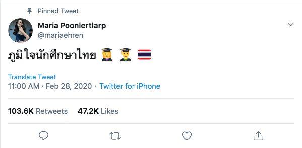 และหลังจากนั้น มารีญา ก็โพสต์ข้อความให้กำลังใจบรรดานักเรียน นิสิต นักศึกษาว่า “ภูมิใจนักศึกษาไทย” พร้อมทั้งโพสต์อีโมจิรูปบัณฑิตและธงชาติไทย กลายเป็นที่ฮือฮาในโลกทวิตเตอร์ โดยมีการรีทวีตข้อความดังกล่าวนับแสนครั้ง กดไลค์หลายหมื่นไลค์ และมีคนแสดงความคิดเห็นเป็นจำนวนมาก