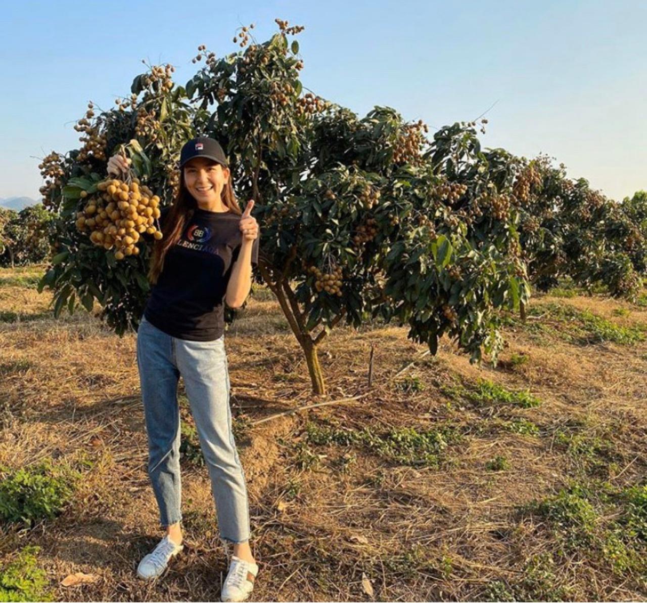 "5 ปี ผ่านไป เราผ่านอะไรกันมามากมาย เห็นลำไยที่สวนเรา ติดลูกปีนี้เป็นปีแรก ครั้งแรก ก็ได้ชื่นใจ หายเหนื่อยกันมาหน่อย จำได้ว่า พอคลอดชิลีน ปี 2015 เราก็เริ่มลุยงานที่สวนเลย ลุยลงต้นกล้า ปลูกลำไยกัน สวนเราวางระบบแบบสมัยใหม่ มีระบบน้ำอย่างดี ทำต้นทรงพุ่มเตี้ย สะดวกต่อการเก็บเกี่ยว เราผ่านทั้งปัญหา อุปสรรค หลายๆเรื่องราวมาด้วยกัน