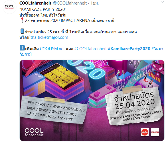 หลังจากที่คูล ฟาเรนไฮต์ มีแพลนที่จะจัดคอนเสิร์ต “Kamikaze Party 2020” (กามิกาเซ่ ปาร์ตี้ 2020) ในวันที่ 23 พ.ค. 2563 ณ อิมแพ็ค อารีน่า เมืองทองธานี และเผยรายชื่อศิลปินที่จะขึ้นเวทีคอนเสิร์ต อาทิ เฟย์ ฟาง แก้ว, เค-โอติก, หวาย, ขนมจีน, มิล่า, SISKA, SWEE:D, INK, 3.2.1 และ ธามไท แต่กลับไม่มีรายชื่อของ โฟร์-มด ศิลปินดูโอเบอร์ต้นๆ ของค่าย ซึ่งมีเพลงดังมากมาย
