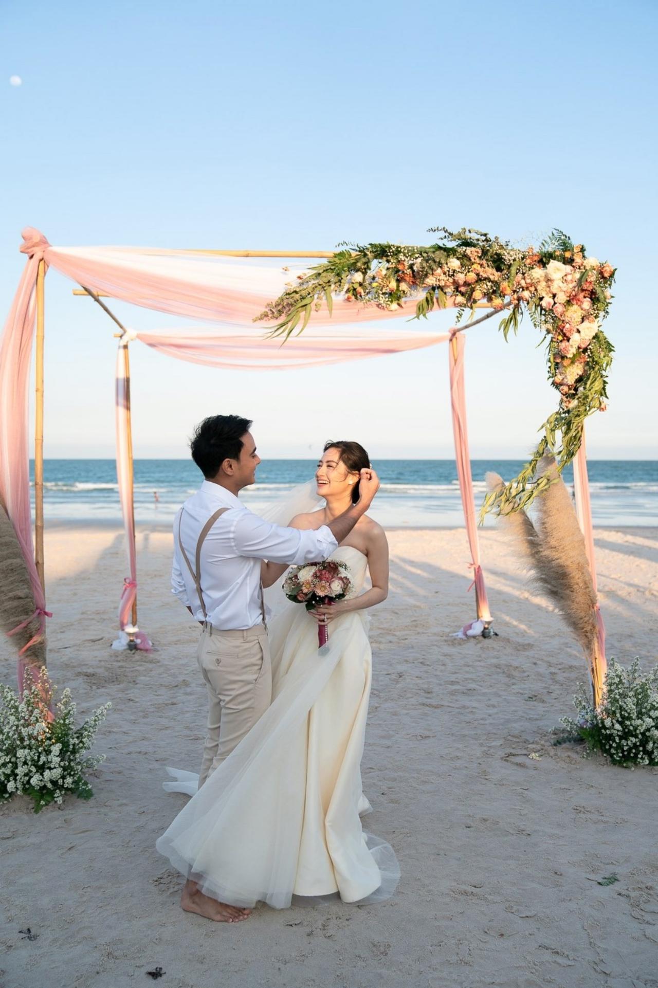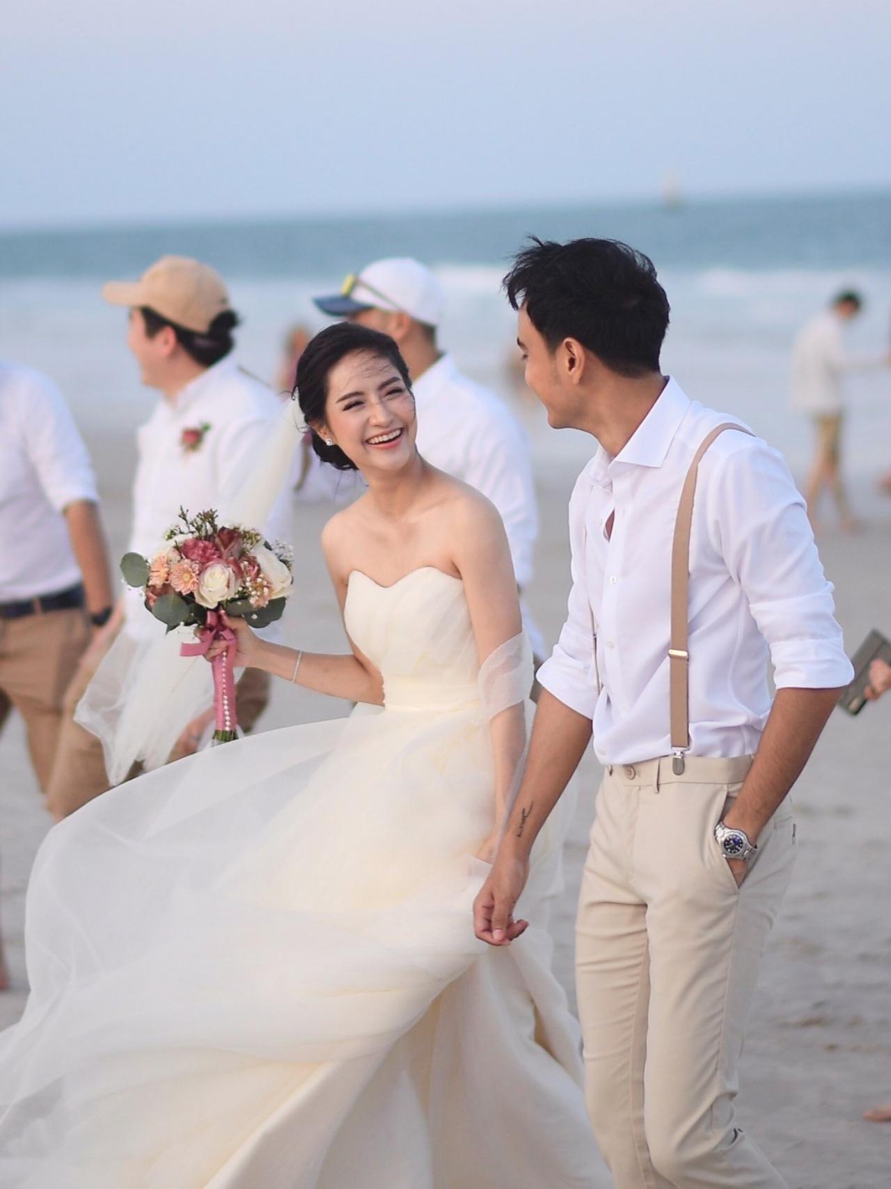 จากนั้นก็เข้าสู่งานเลี้ยงฉลองมงคลสมรสในตอนค่ำท่ามกลางบรรยากาศที่อบอวลไปด้วยกลิ่นอายแห่งความรัก ความอบอุ่น และรอยยิ้มตลอดทั้งงาน แต่จัดงานวันเดียวยังไม่สาแก่ใจ เจ้าบ่าวเลยขอทำความฝันของเจ้าสาวแต่งงานริมทะเลกลายเป็นความจริงขึ้นมา ที่ อ.ปราณบุรี จ.ประจวบคีรีขันธ์ ให้เป็นงานวิวาห์แสนหวาน & อบอุ่น ในค่ำคืนวันเสาร์ที่ 7 มีนาคม 2563