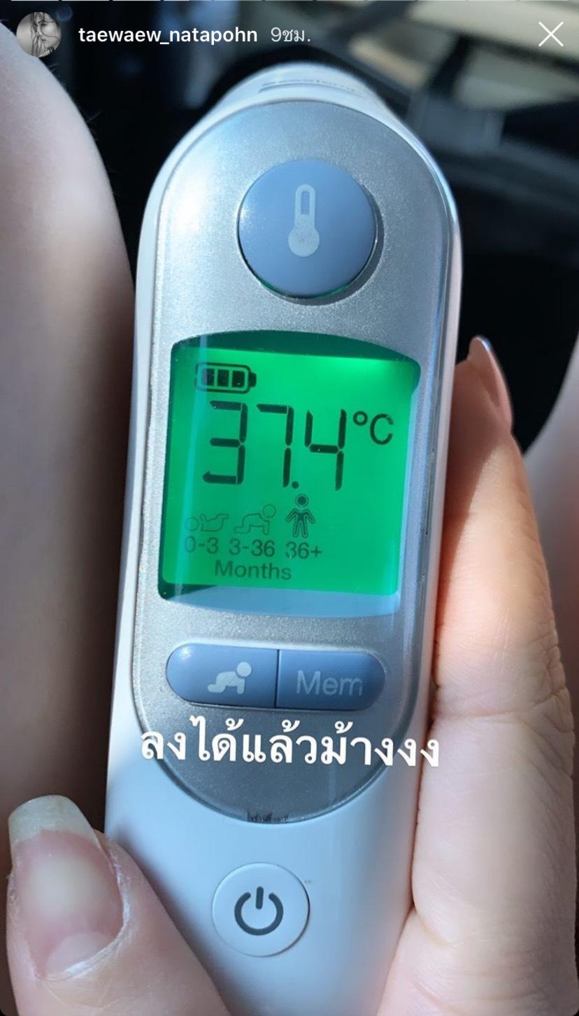 ออกอาการกังวลใจไม่น้อย สำหรับนางเอกสาว แต้ว ณฐพร เตมีรักษ์ ที่เจ้าตัวได้ไปตรวจและทราบผลไม่เจอเชื้อโควิด-19 แล้วก็ตาม แต่ล่าสุดนางเอกสาวยังมีอาการไข้สูงอยู่ ซึ่งเจ้าตัวได้ลงรูปผลวัดอุณหภูมิร่างกายจากเครื่องวัดฯ ลงในไอจีสตอรี่ของตัวเอง ว่ามีอาการไข้ขึ้นสูง 2 วันติด