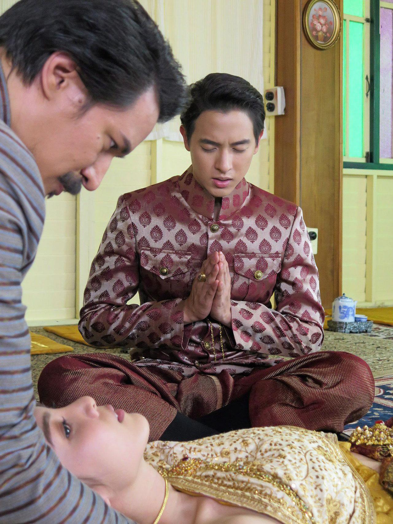 วันนี้เป็นฉากใหญ่และยากอีกฉากหนึ่ง เพราะตัวละครมากันครบ แถมนักแสดงตัวประกอบอีกเพียบ แล้วทุกคนต้องแต่งชุดไทย ดังนั้น แค่แต่งตัวนักแสดงก็เล่นเอาหมดไปครึ่งวันแล้ว ผกก. ฟิวส์-กิตติศักดิ์ เรียกซักซ้อมหมู่มวลเสร็จก็เจาะเป็นคนๆ จากนั้นจึงเริ่มถ่ายจริง ใยไหม กับ อเล็กซ์ เข้าพิธี แต่งงานอย่างมีความสุข แต่แล้วจู่ๆ ใยไหม ก็เกิด อาการชักตาตั้งน้ำลายฟูมปาก ถึงคราวที่ เจมส์ ออกศึกล่ะ ปรี่เข้าไปพนมมือบริกรรมคาถา งัมๆๆๆๆ (ฟังไม่ชัด) ฟากสาว ใยไหม ก็ยิ่งดิ้นยิ่ง กระตุก อเล็กซ์ ต้องช่วยประคองใยใหม ไว้ ด้านพ่อหมอ เจมส์ เด่นสุดเพราะทุกคนจับตามองกำลังทำอะไรของเขาว้า! เจมส์ ทำปากงุบงิบๆท่องคาถาอะไรสักอย่าง เท่านี้ยังดูไม่ขลัง เจมส์ จึงยื่นมือไปเขียนอักขระโบราณบนหน้าผาก ใยไหม อีกด้วย แหม ยังดีนะยังไม่ถึงขั้นให้ฟันด้วยมีดหมอหรือฟาดด้วยหวายเสก หุๆ สำหรับเบื้องหลังการเขียนอักขระนั้น ผกก.ใช้วิธีให้ เจมส์ แอบดูจากโทรศัพท์มือถือแล้วเขียนตามเลย เพราะถ้ามั่วๆเดี๋ยวโดนด่าแน่!...ตามชมฝีมือ พ่อหมอเจมส์ ได้คืนนี้ 20.20 น. ทางช่อง 3.